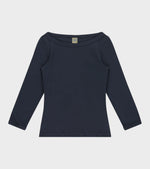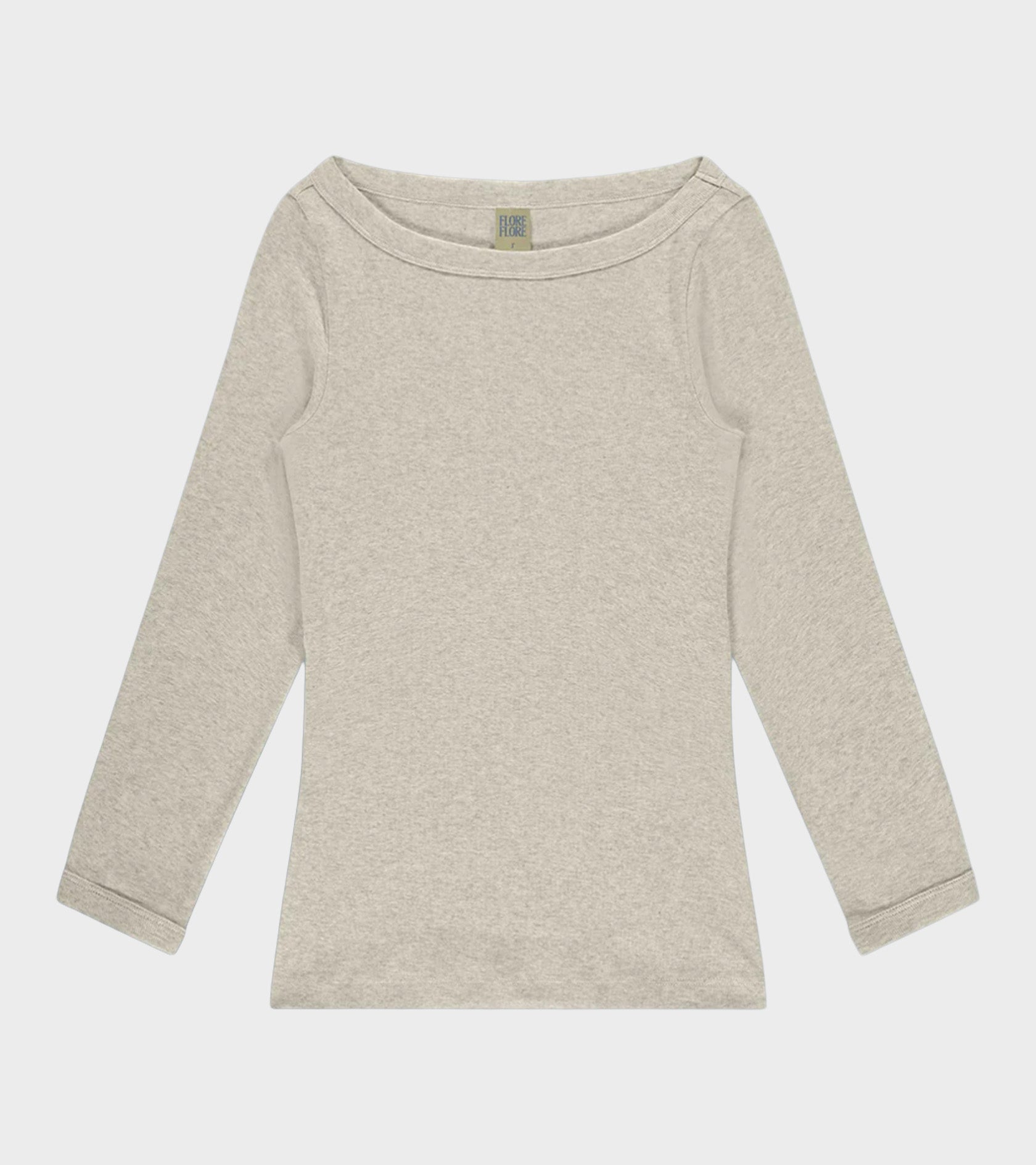 Grå bluse fra Flore Flore. Steffi Tee er fremstillet i en 'medium weight' økologisk bomuldskvalitet og har en bådudskæring samt 3/4 lange ærmer. Den er produceret i Portugal og har en let tætsiddende pasform.
