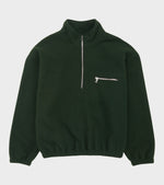 Mørkegrøn fleece fra RIER. Denne fleece er fremstillet i naturligt jomfru uld - et bionedbrydeligt materiale, som ikke kræver så meget vedligholdelse. Den har en høj hals, en half-zip lynlåslukning og en lynlåslomme ved venstre bryst. Fleecejakken er produceret i Østrig, er unisex og har en afslappet pasform.