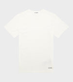 Sort t-shirt fra Jil Sander. Denne t-shirt er fremstillet i en let bomuldscrepe kvalitet og har en rund hals samt et printet logo nederst i siden. T-shirten er produceret i Italien og har en let afslappet pasform.