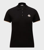 Sort kortærmet polo fra Moncler. Denne polo er fremstillet i bomuldspiqué og har en klassisk polokrave, en logo-trykknaplukning og lysebrune kontrastdetaljer ved ærmerne. Ved venstre bryst er det ikoniske logo i filt.