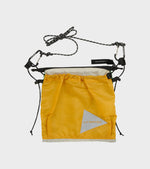 Orange og grøn taske fra And Wander. Denne taske er fremstillet i en nylon-ripstop og har to centrale rum, hvoraf det ene lukkes med en lynlåslukning. Tasken har en justerbar crossbody-snor samt en karabinhage i hver side. Tasken er produceret i Japan.