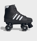 Sorte rulleskøjter fra Adidas. Superstar 82 Roller Skates tager udgangspunkt i den ikoniske Superstar model. Rulleskøjterne har en overdel i læder, en klassisk snørelukning, hvide detaljer samt striber på siderne. De har en forbremse samt logoer på hjulene.