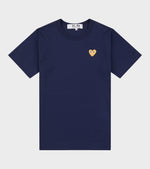 Hvid unisex t-shirt fra Comme des Garcons PLAY med mærkets karakteristiske hjerte med øjne. Det ikoniske hjerte med øjnene fra PLAY er designet af Filip Pagowski og er gennemgående på alle PLAY produkter. Denne t-shirt har et lille broderet hjerte i guld ved venstre bryst.