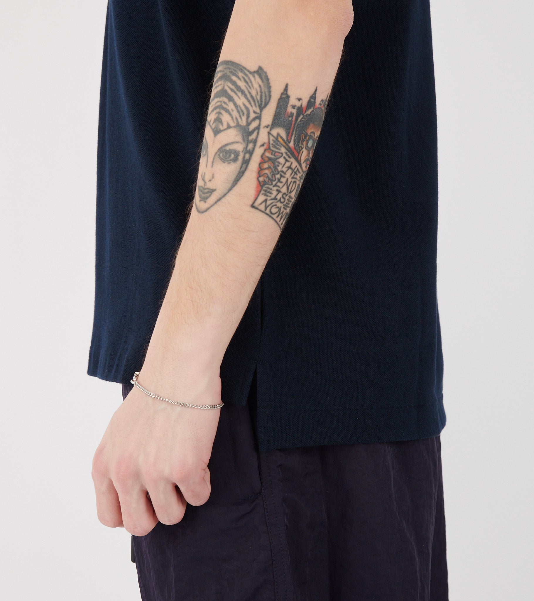 Navy unisex kortærmet polo fra Comme des Garcons PLAY med mærkets karakteristiske hjerte med øjne.