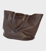 Stor cognac-brun tote bag fra AF Agger. Full Grain Leather Tote Bag er fremstillet i læder fra den italienske læderspecialist 'Pontremolesi' - en familieejet virksomhed, som har produceret tasker og accessories siden 1982. Tasken har en dobbelt skulderrem og et diskret præget logo nederst på fronten.