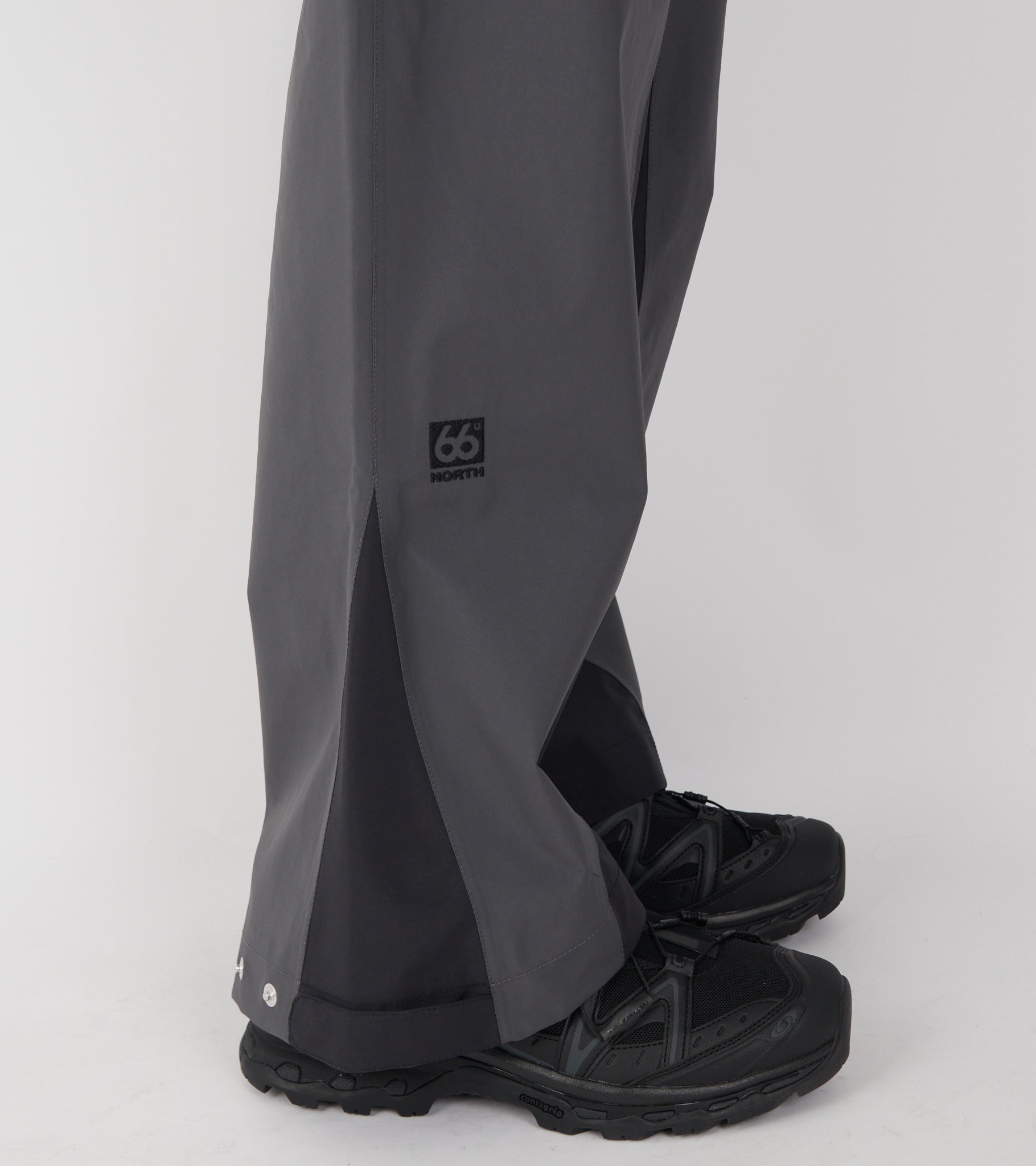 Skalbukser i grå og sort fra 66 North. Dyngja Shell Pants er en vandtæt buks som har to tapet sidelommer, elastisk talje og kan spændes ind forneden.