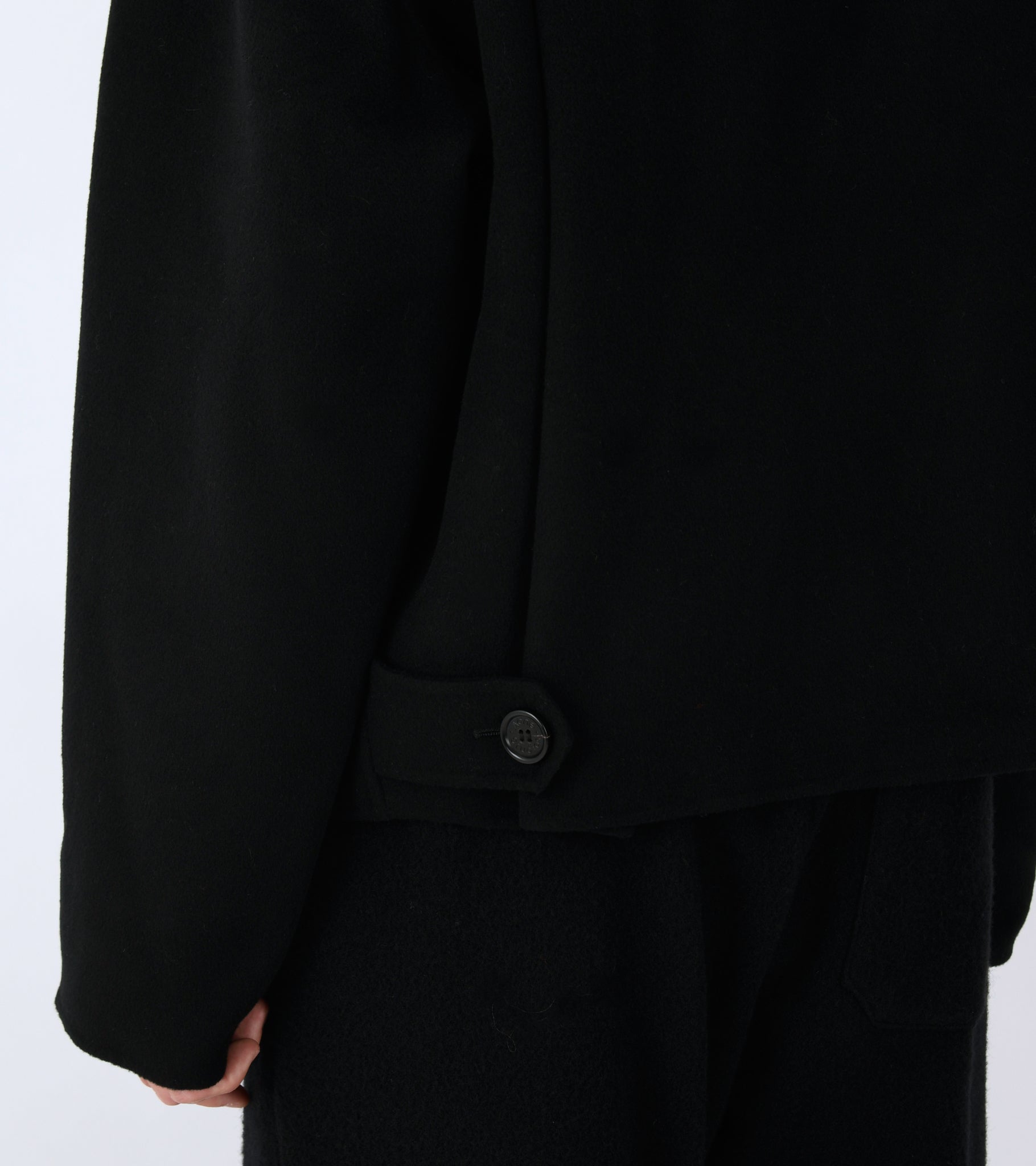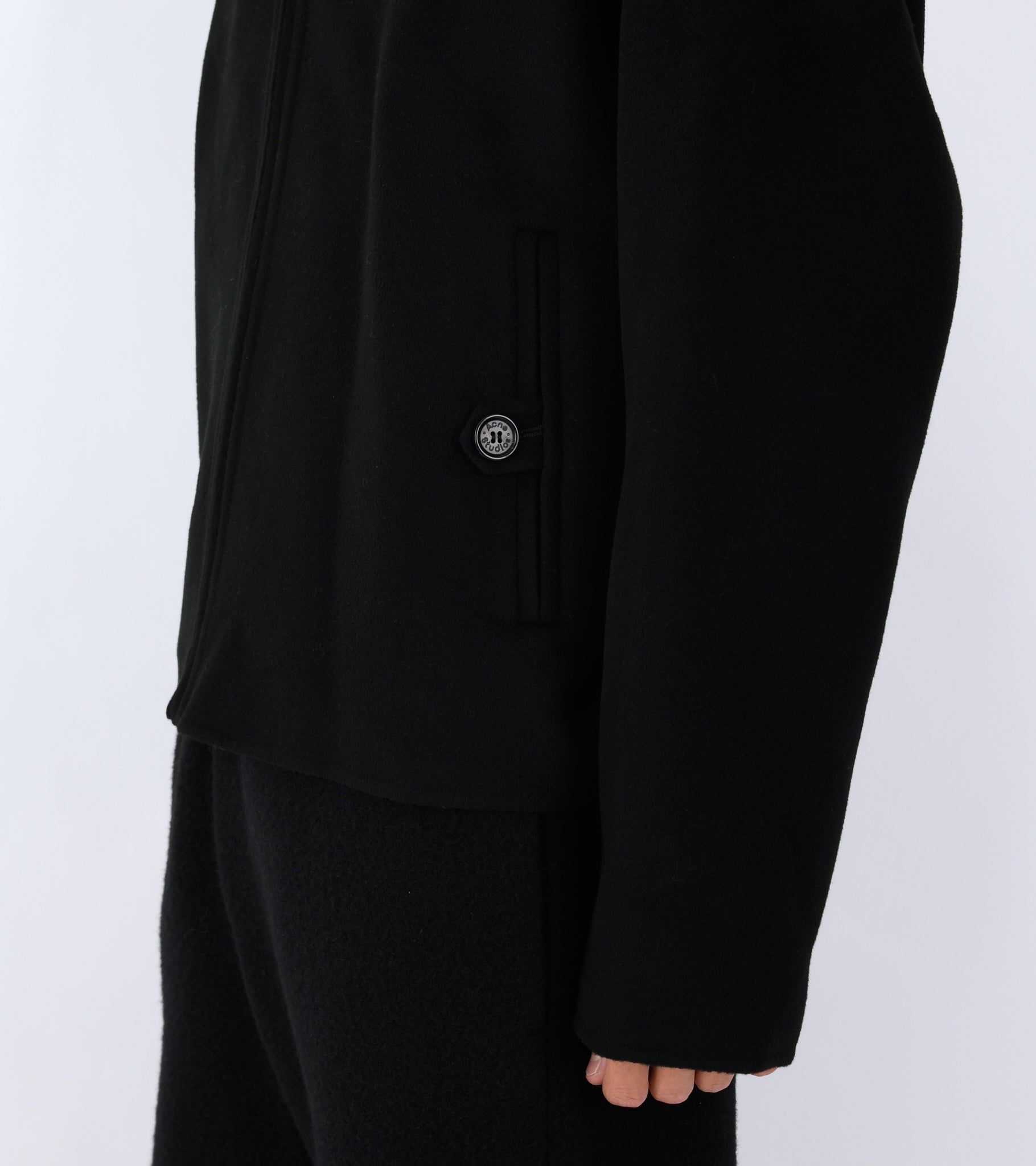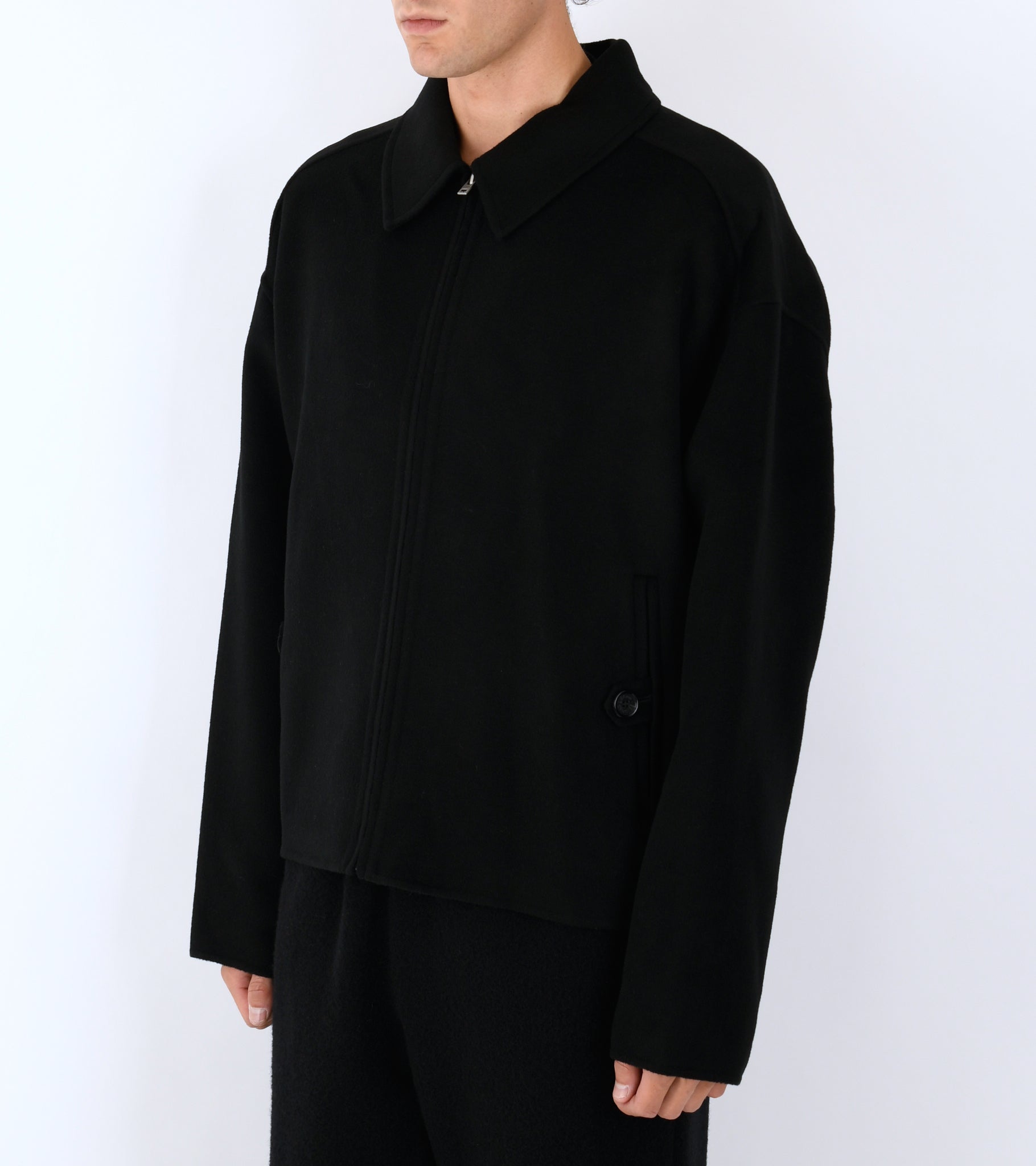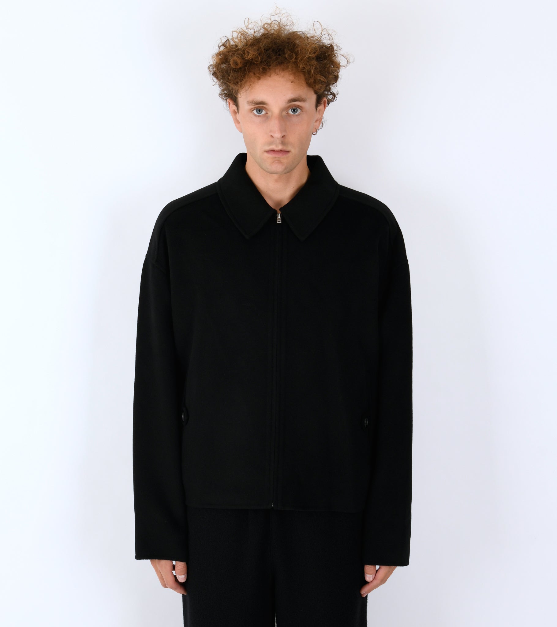 Sort blød jakke i kashmir uldblanding fra Acne Studios. Cashmere Jacket Black har lynlås lukning, kan spændes ind i hver side med knapper og har to sidelommer.