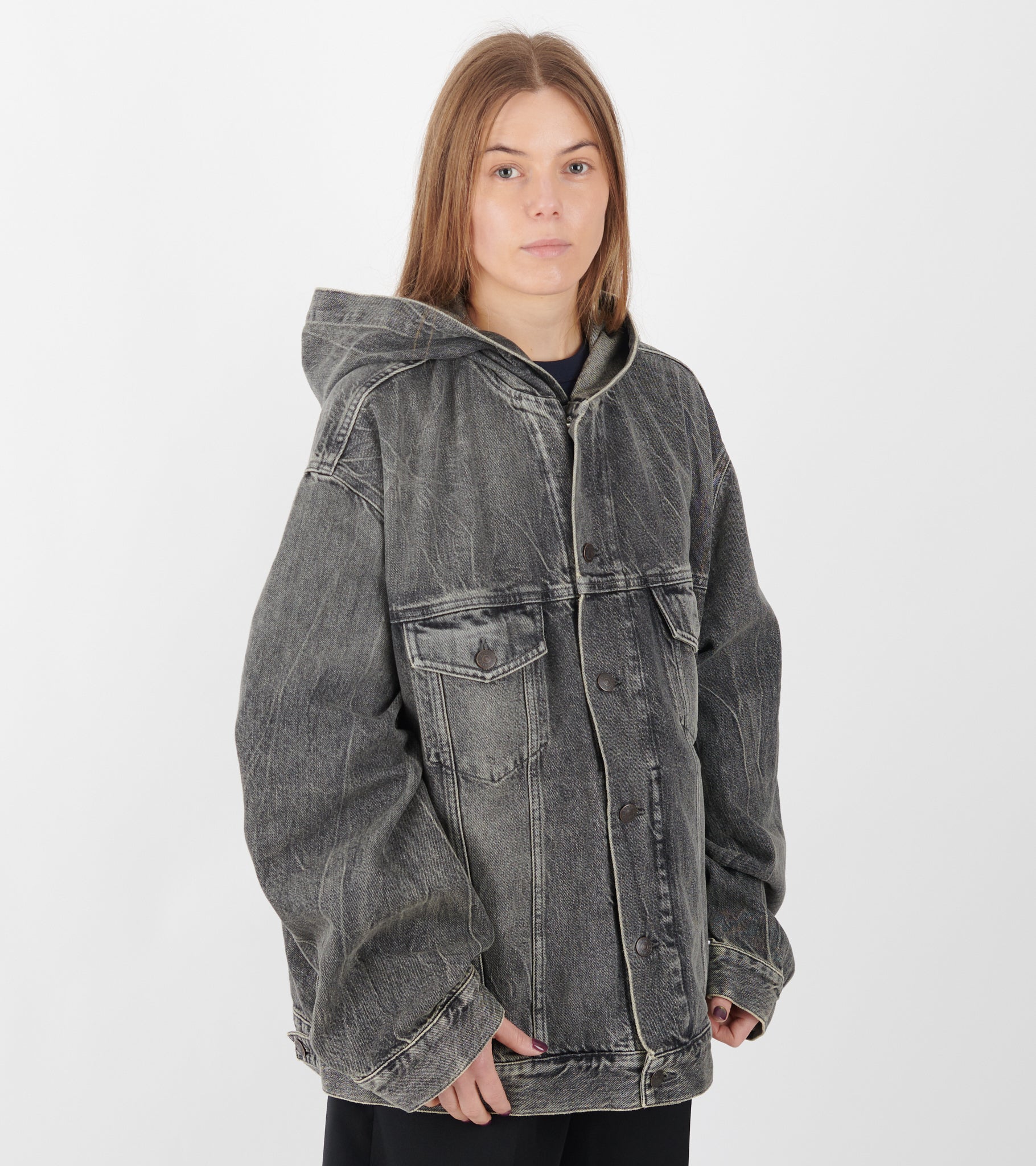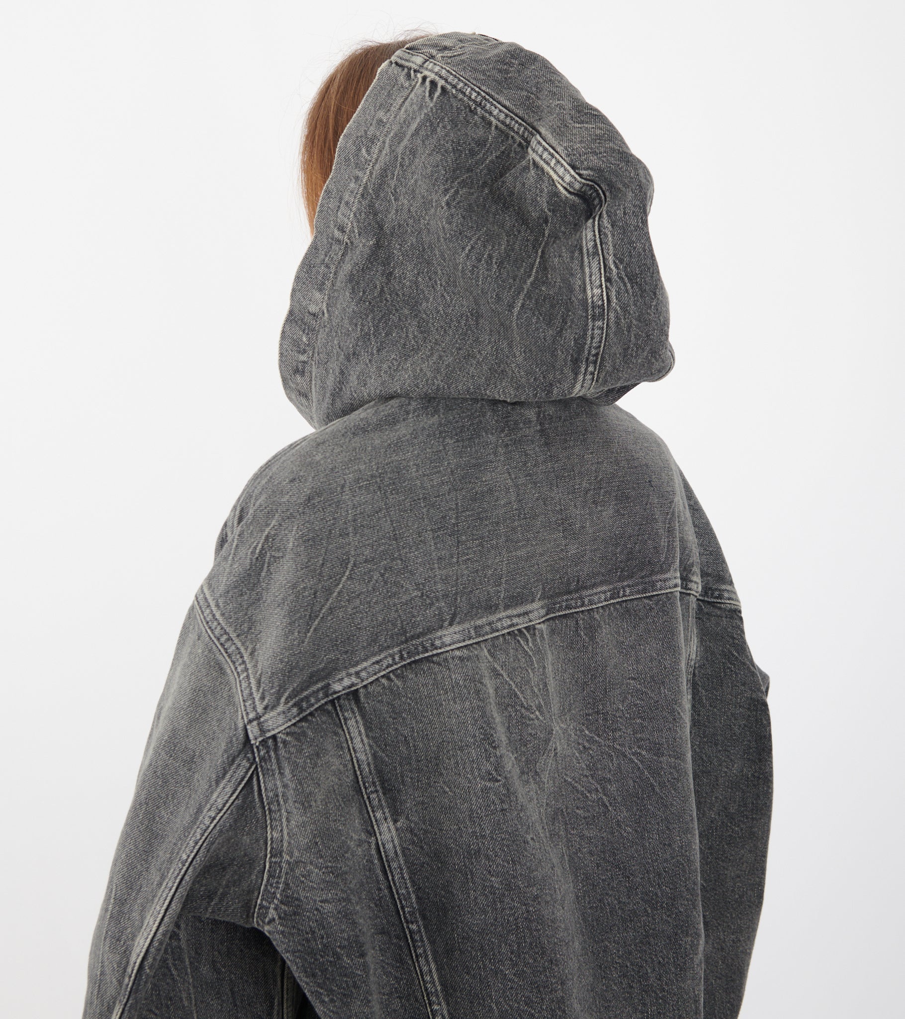 Hooded Denim Jacket Washed Black