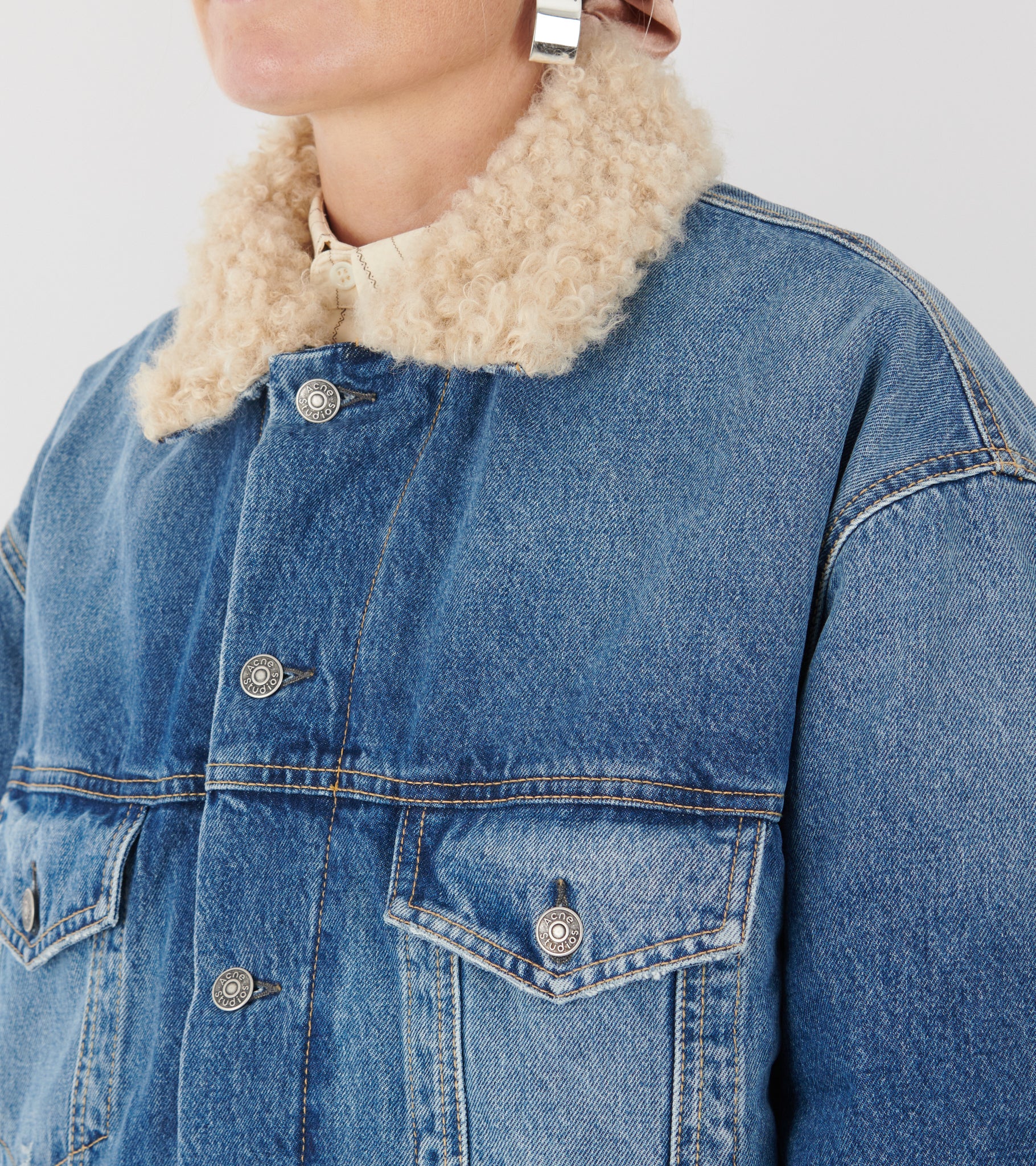 Foret denimjakke med krave i faux fur fra Acne Studios.