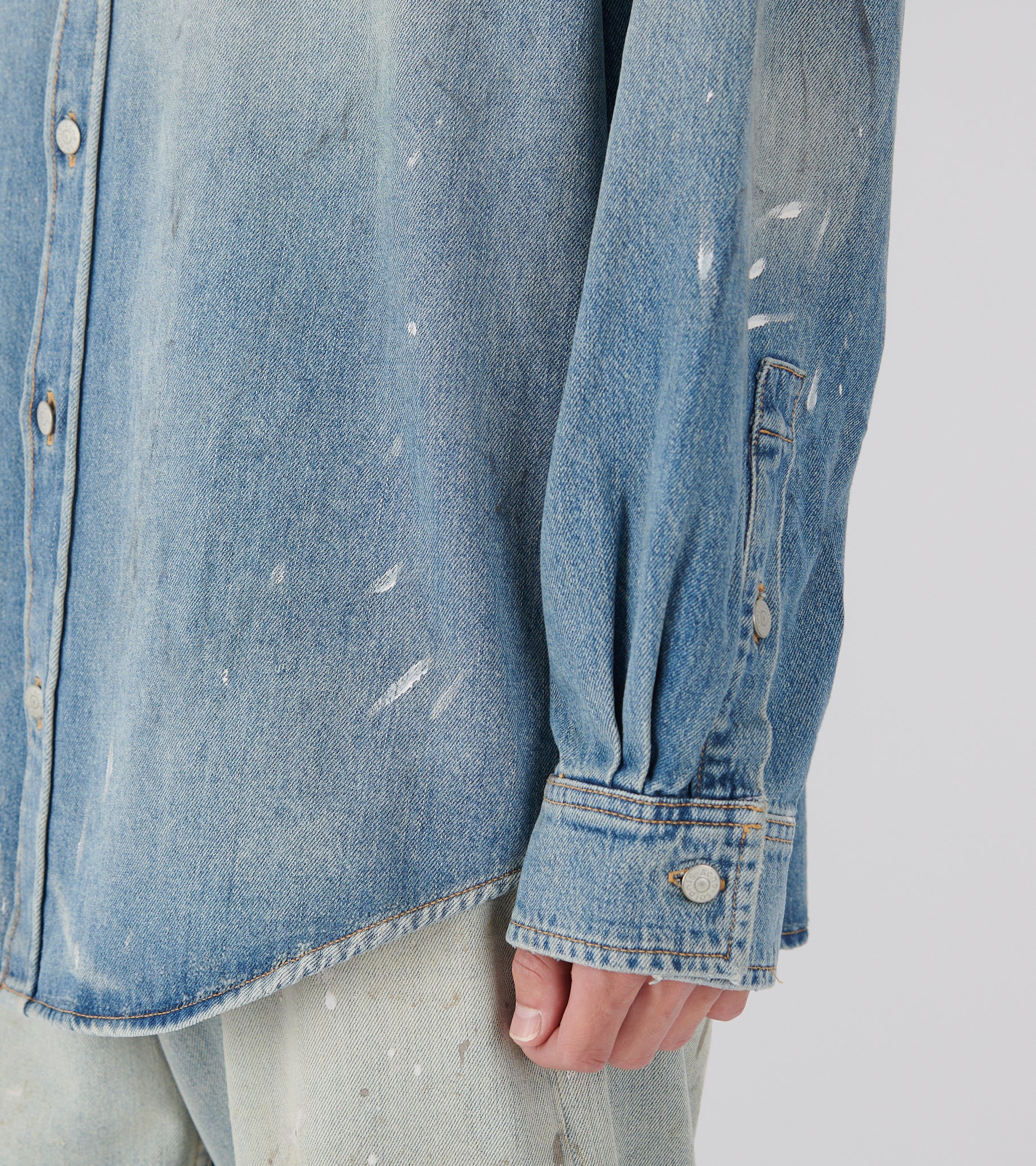 Lyseblå skjorte i bomuldsdenim med 'distressed' detaljer fra Acne Studios.