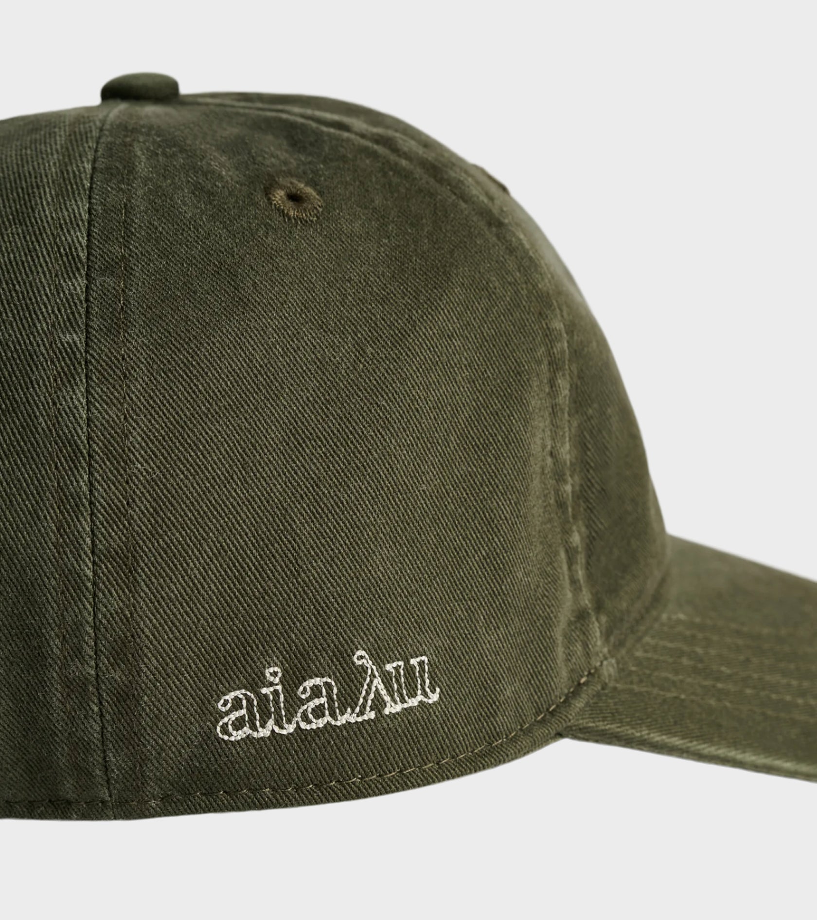 Grøn kasket i økologisk bomuld fra Aiayu. Denne kasket er one size og kan justeres i størrelsen. På siden er et broderet logo.