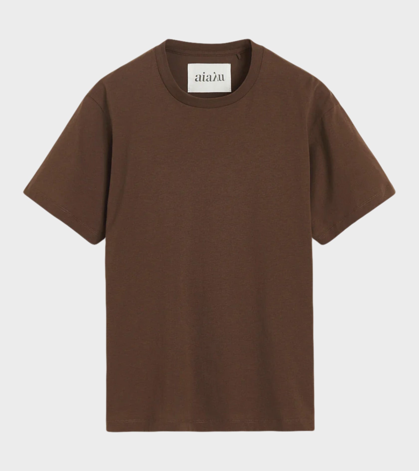 Brun t-shirt fra Aiayu. Classic Circular Tee er unisex og fremstillet i en blanding af økologisk og genanvendt bomuldsjersey. Den er fremstillet i Portugal ved brug af restmaterialer fra Aiayu's egen bomuldsproduktion. T-shirten har en rund hals og to små hvide syninger i siden - hvilket er kendetegnet t-shirtsene fra Aiayu's 'Shared' kollektion. Classic Circular Tee har en klassisk unisex pasform, inspireret af klassiske herre t-shirts.