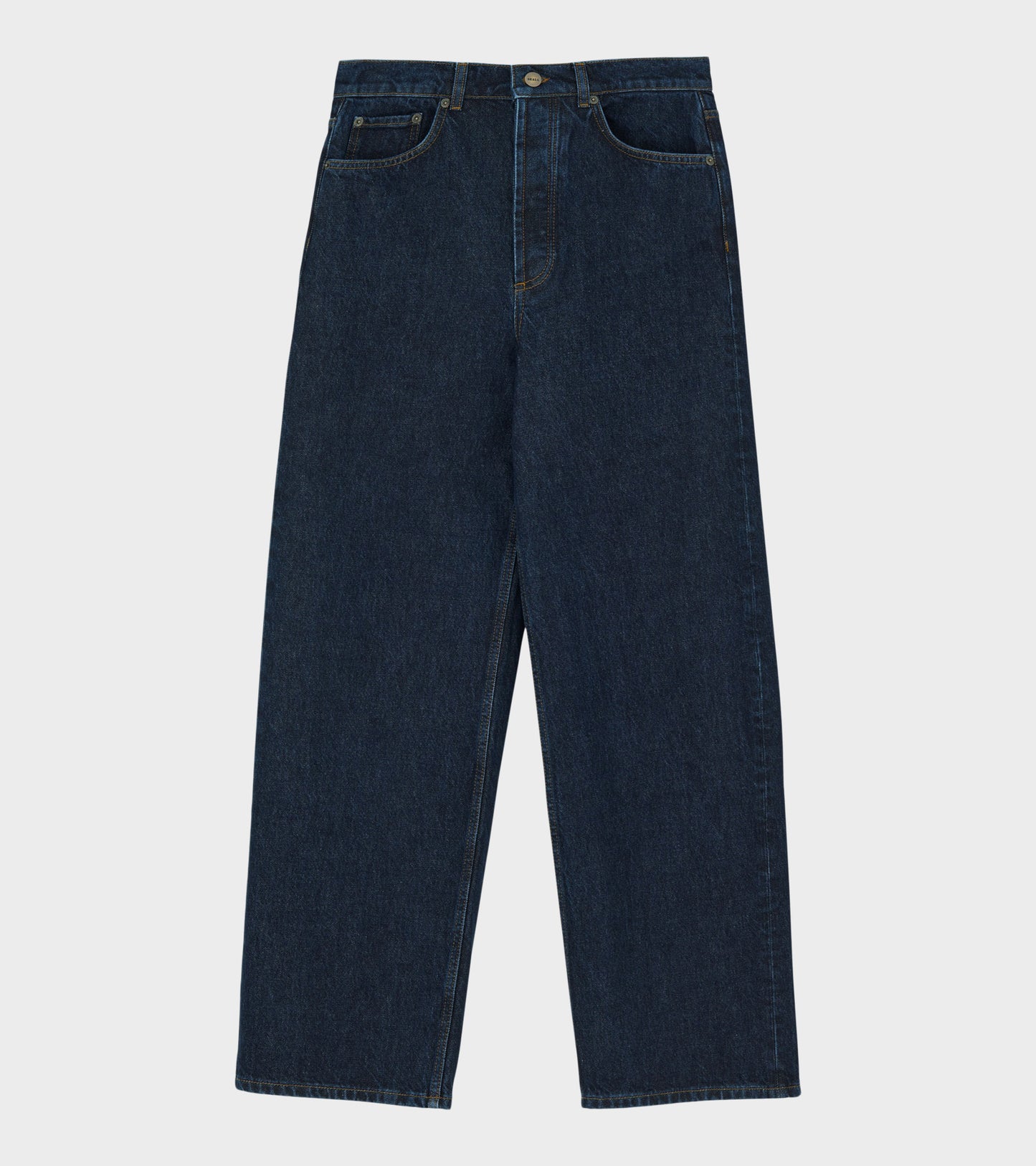 Mørkeblå jeans i økologisk bomuldsdenim fra Skall Studio.