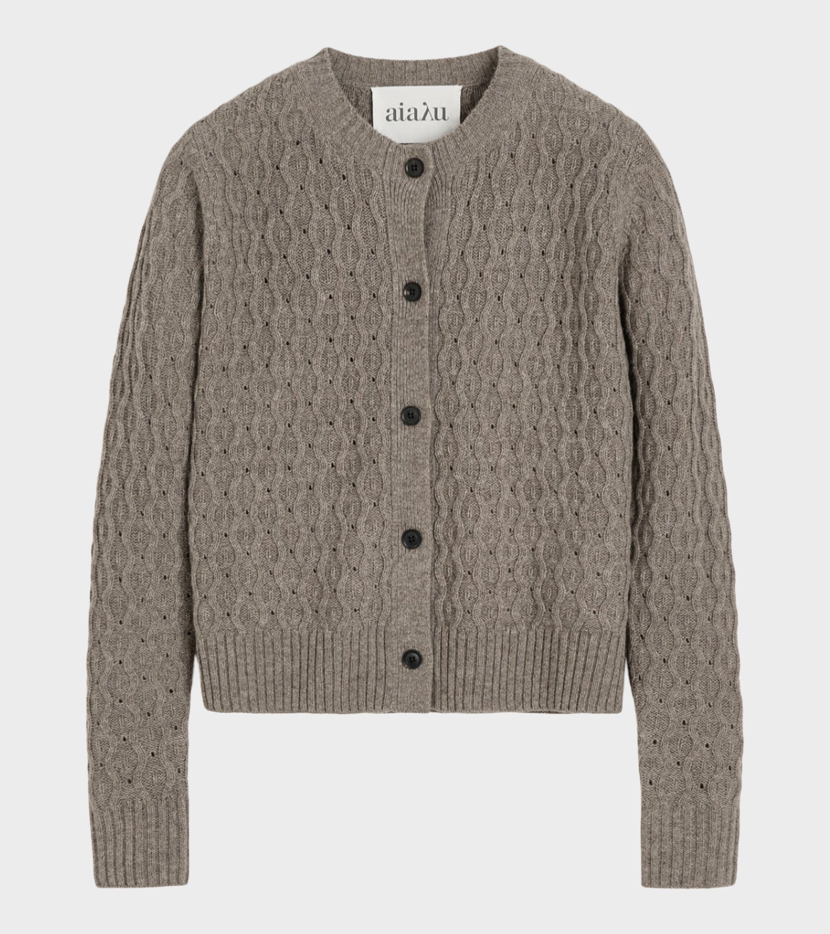 Cardigan i ufarvet Sartuul-uld fra Aiayu.