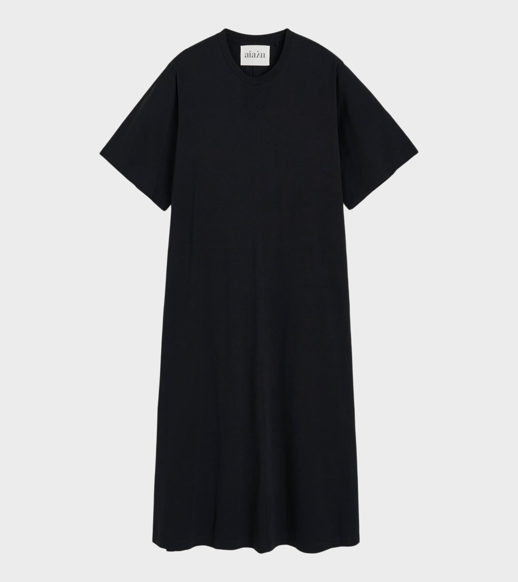 Lang sort t-shirtkjole i økologisk/genanvendt bomuldsjersey fra Aiayu.