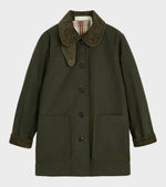 Klassisk oilskinsjakke fra Aiayu. Jamie Jacket er fremstillet af økologisk bomulds-ripstop med en naturlig vand- og vindafvisende overflade. Den er behandlet med naturlig voks som giver en patineret finish og som med tiden vil udvikle folder og en patina, som giver sit eget unikke udtryk. Jakken har en krave, en storm-flap øverst, ternet foring, fløjlsdetaljer, en knaplukning på fronten samt to store påsyede lommer.