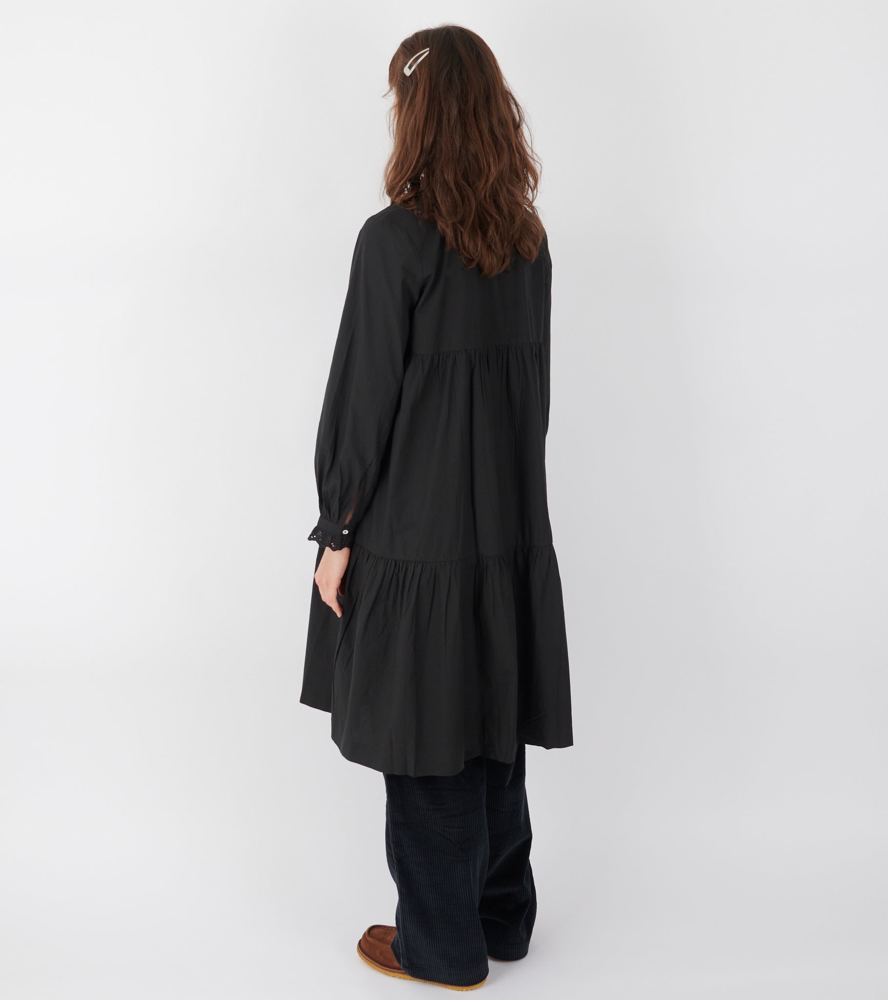 Sort mellemlang skjortekjole i økologisk bomuld fra Skall Studio.