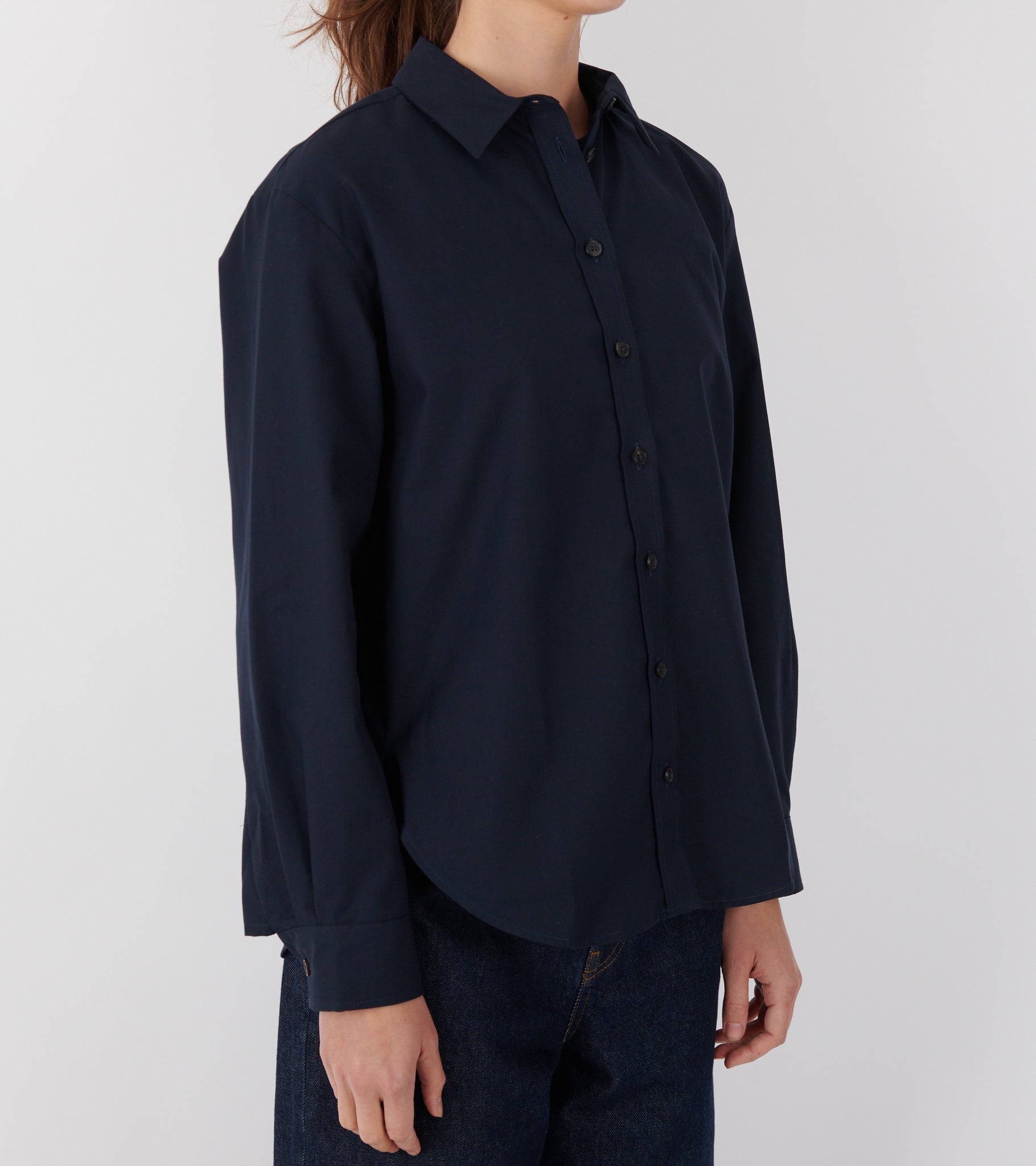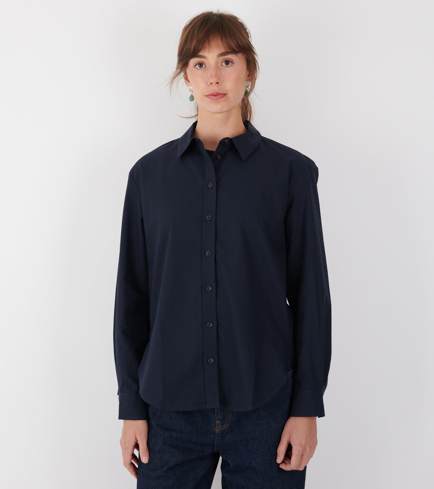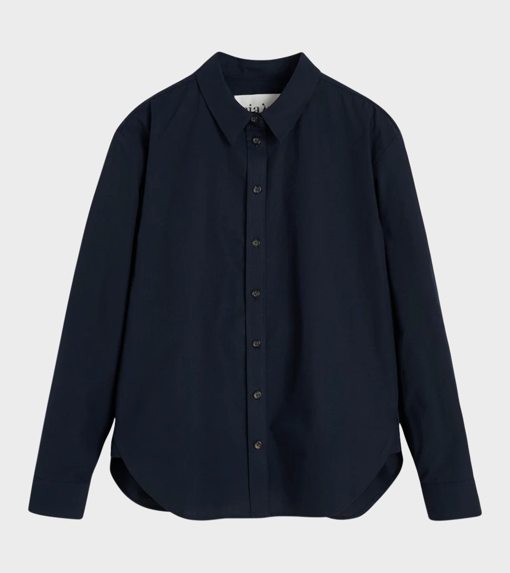 Mørkeblå skjorte i kraftig økologisk bomuld fra Aiayu.