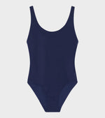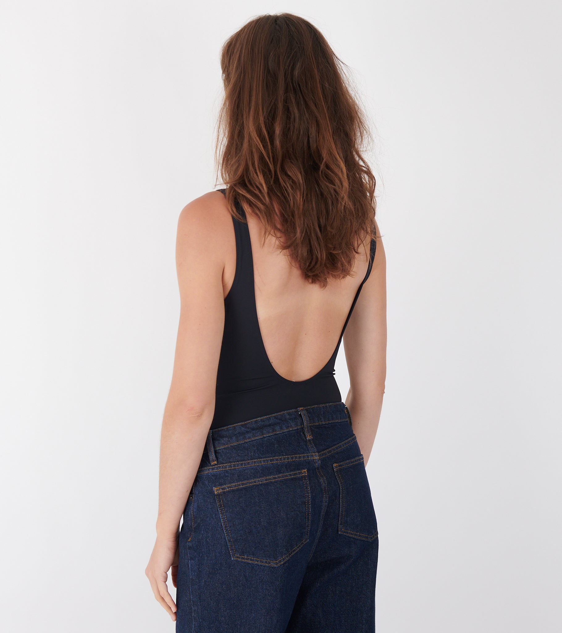 Sort badedragt fra Alipo. Badedragten har en dyb rund udskæring bagpå.
