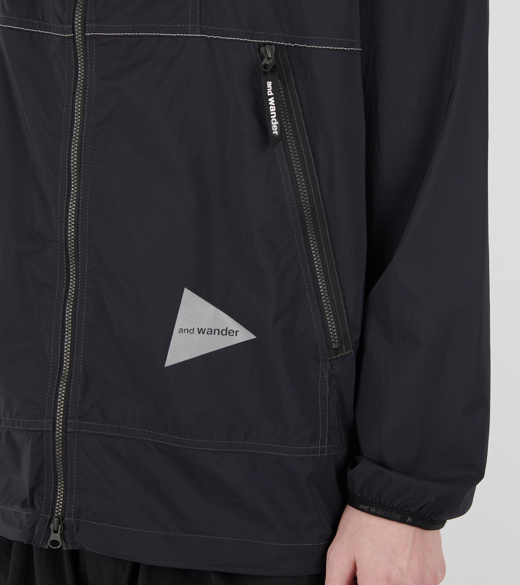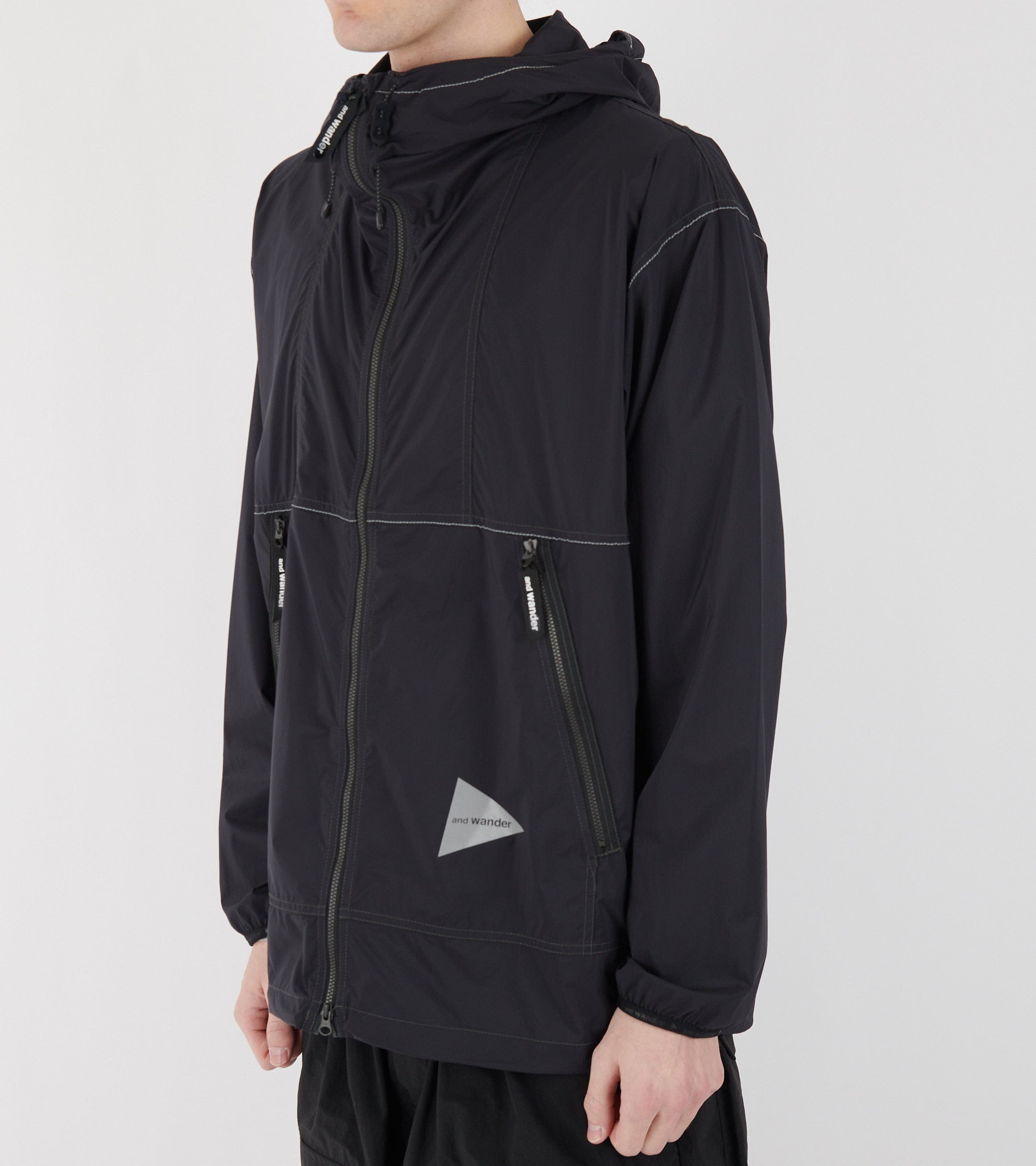 Sort wind breaker med logo fra And Wander.