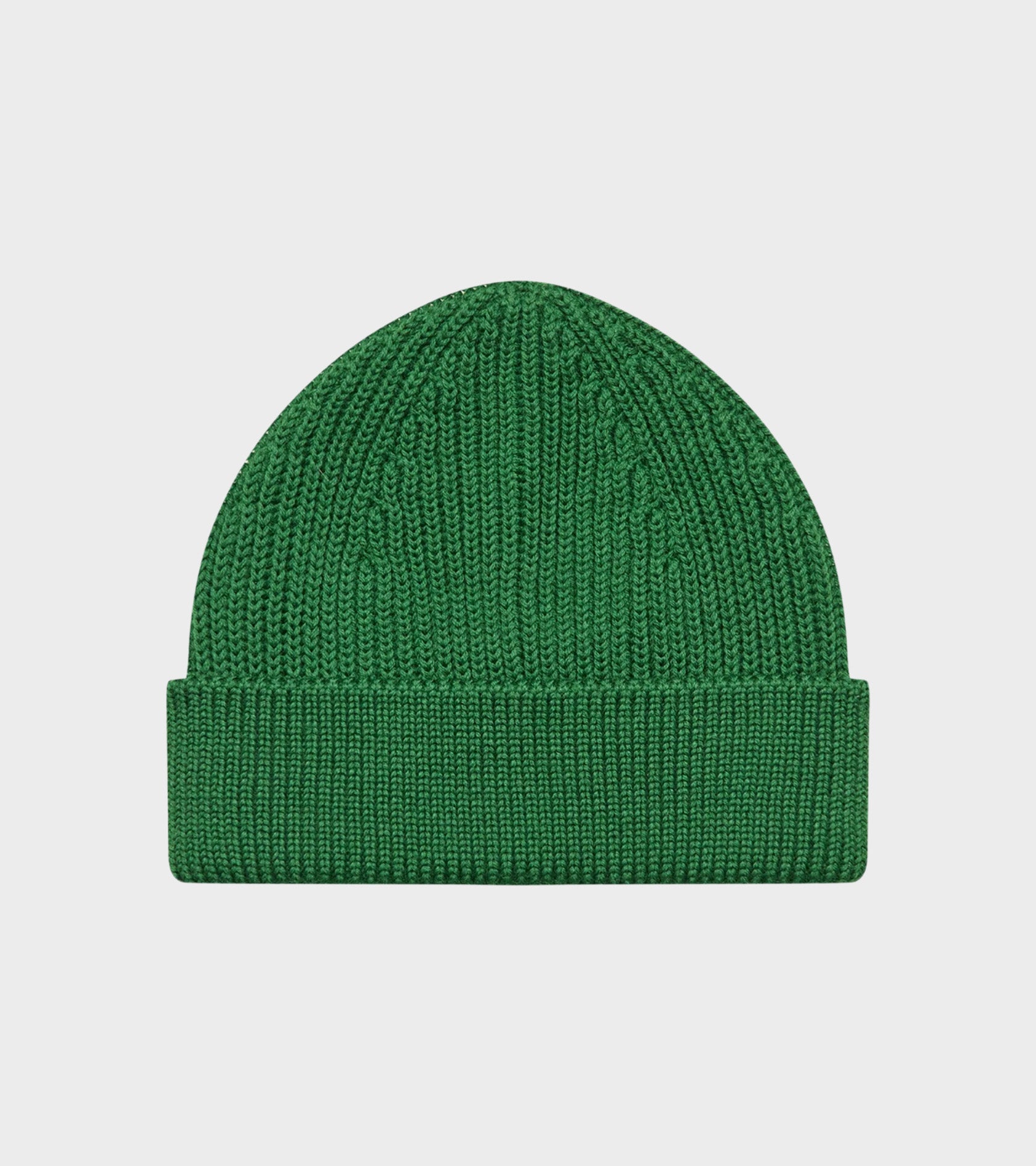 Grøn hue fra Andersen-Andersen. Denne hue er fremstillet i en kraftig jomfru uld. Den er one size og er produceret i Italien.