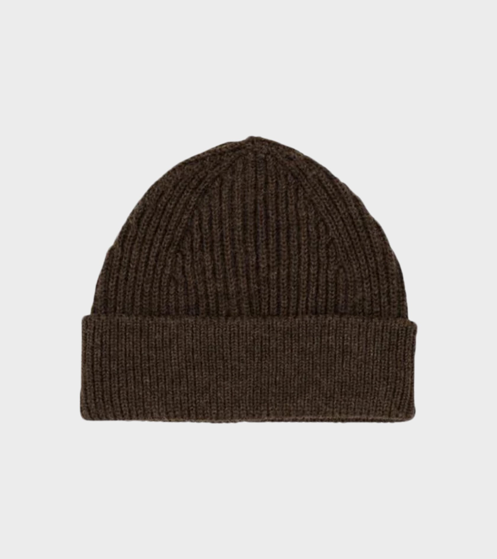 Brun hue fra Andersen-Andersen. Denne hue er fremstillet i en kraftig jomfru uld. Den er one size og er produceret i Italien.