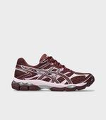 Gel-Cumulus 16 fra Asics i en burgundy nuance med detaljer i lyserød og sølv.