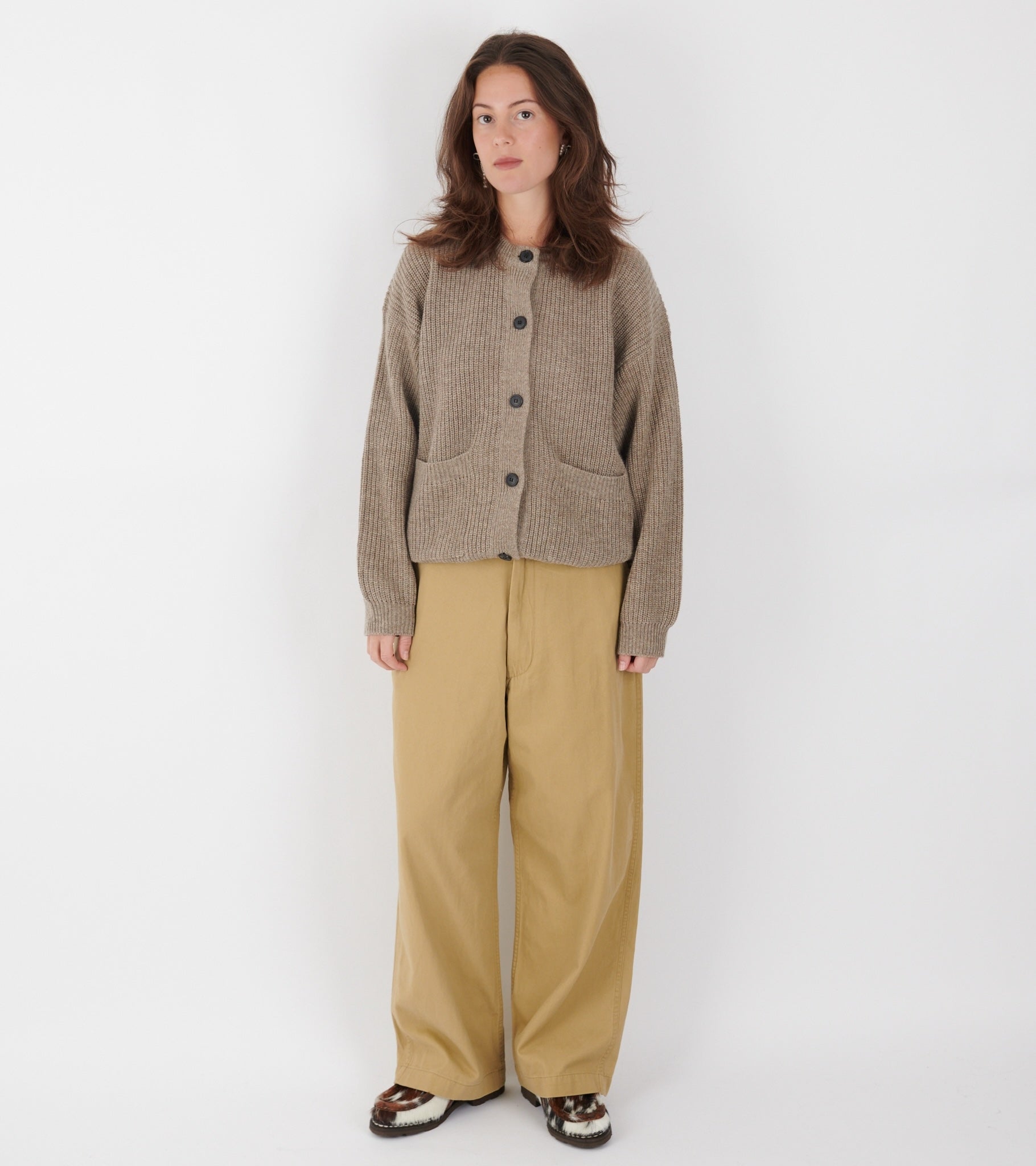 Beige bukser i bomuld fra Beams Boy. Bukserne har bæltestropper, en skrålomme i hver side, en lille lomme på fronten samt to lommer bagpå. Bukserne har brede lige ben.