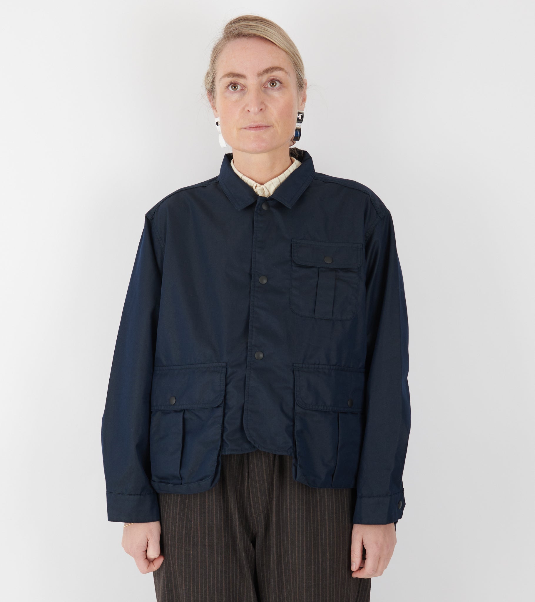 Mørk navy workwear-inspireret jakke fra Beams Boy. Jakken har en klassisk krave, en trykknaplukning samt tre lommer på fronten. Jakken har ekstra længde samt en stor lomme bagpå.