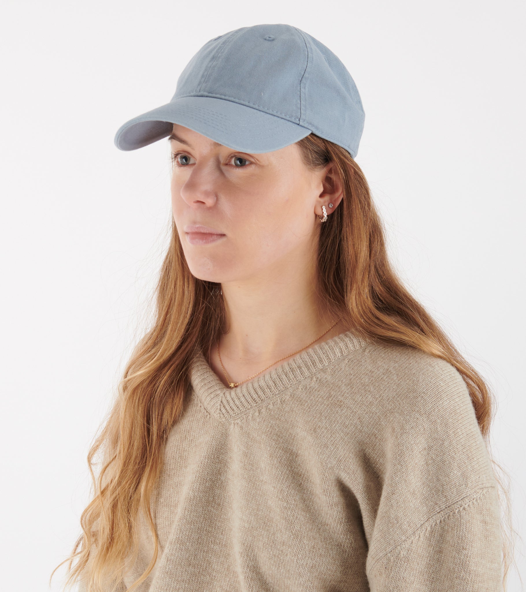 Lyseblå kasket i økologisk bomuld fra Aiayu.