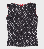 Lyserød top med sorte prikker og detaljer fra Caro Editions.