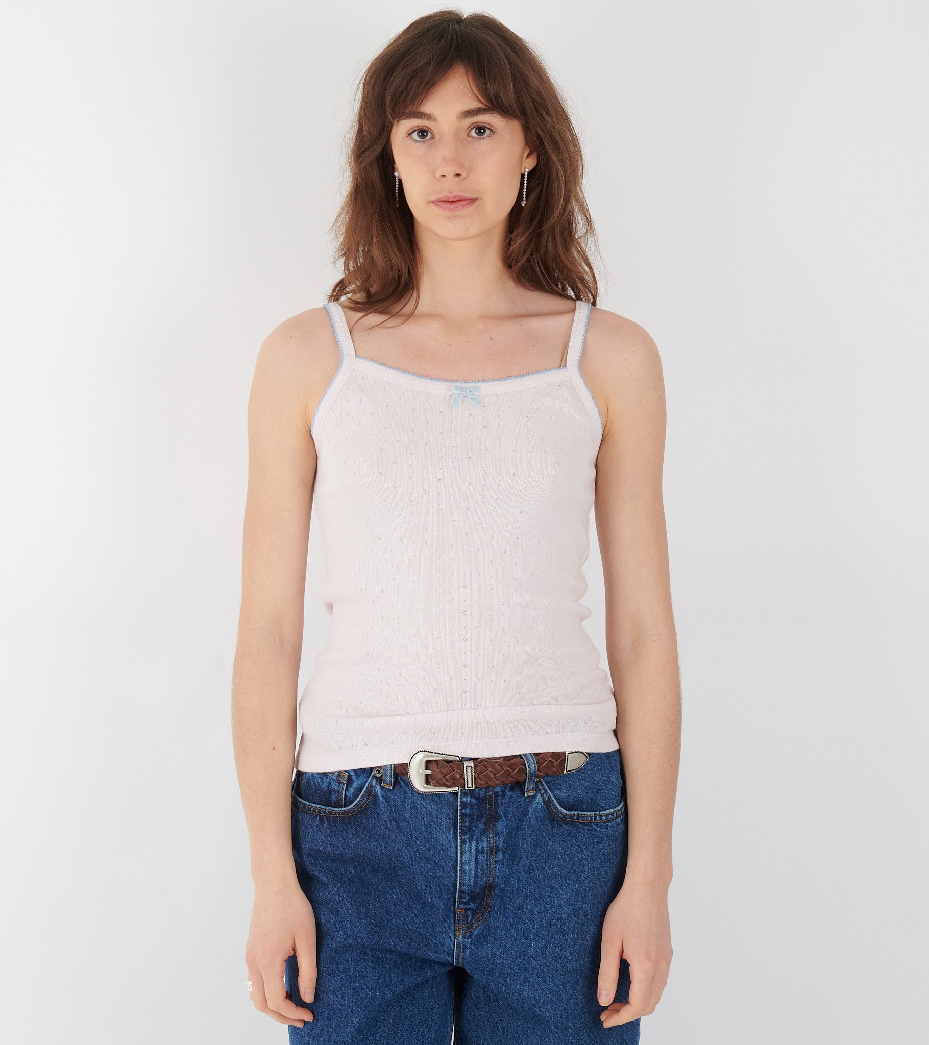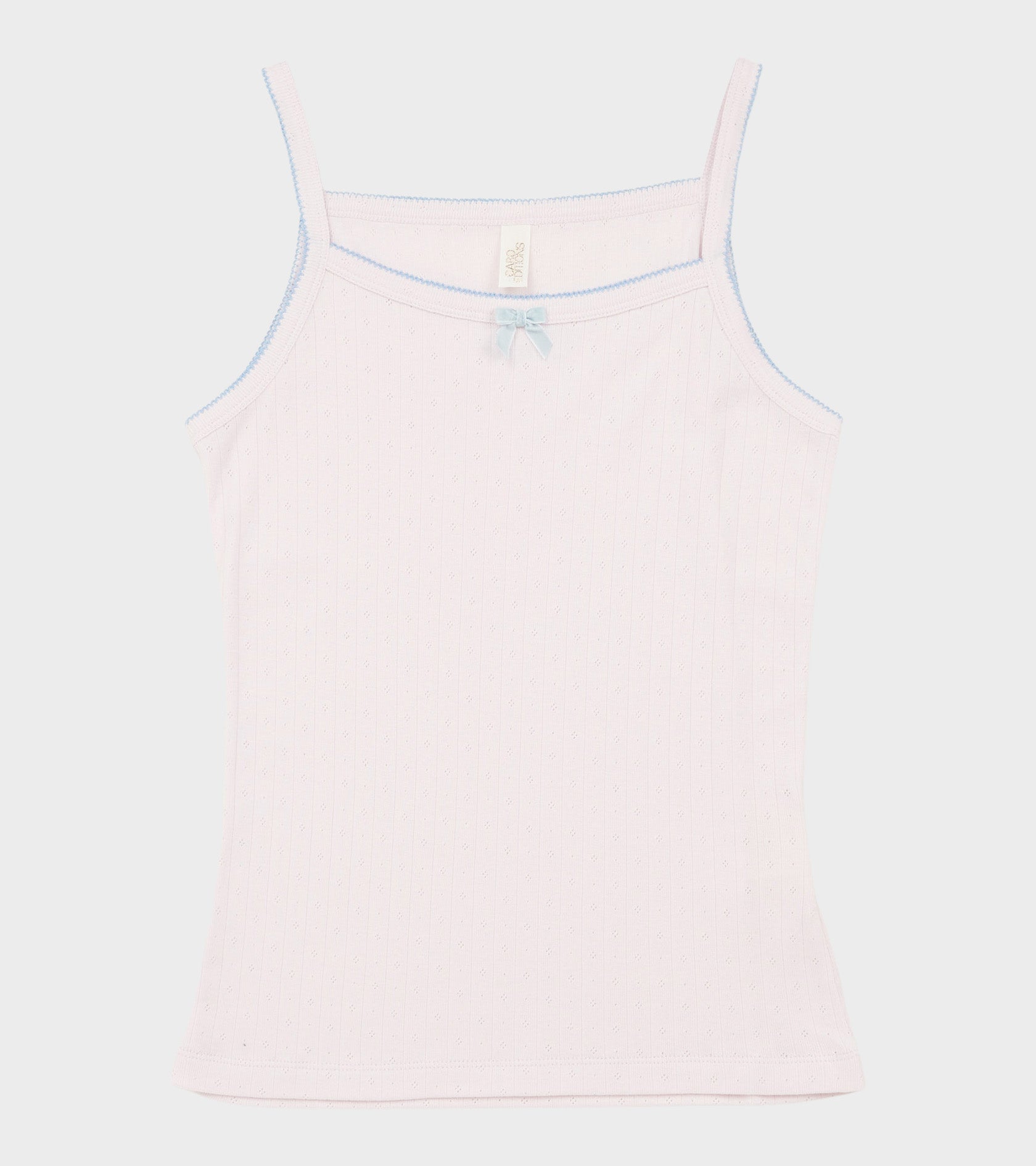 Lyserød top med lyseblå detaljer fra Caro Editions.