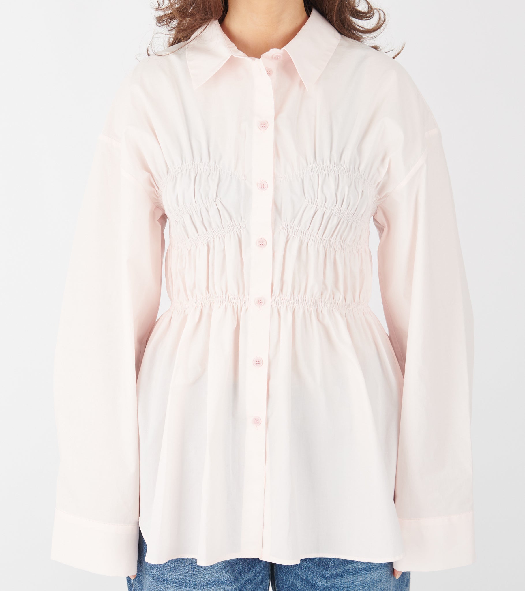Lyserød skjorte i crispy bomuldspoplin fra Cecilie Bahnsen. Braxton Cotton Shirt har en klassisk krave, en knaplukning samt smock-detaljer på både front og ryg.