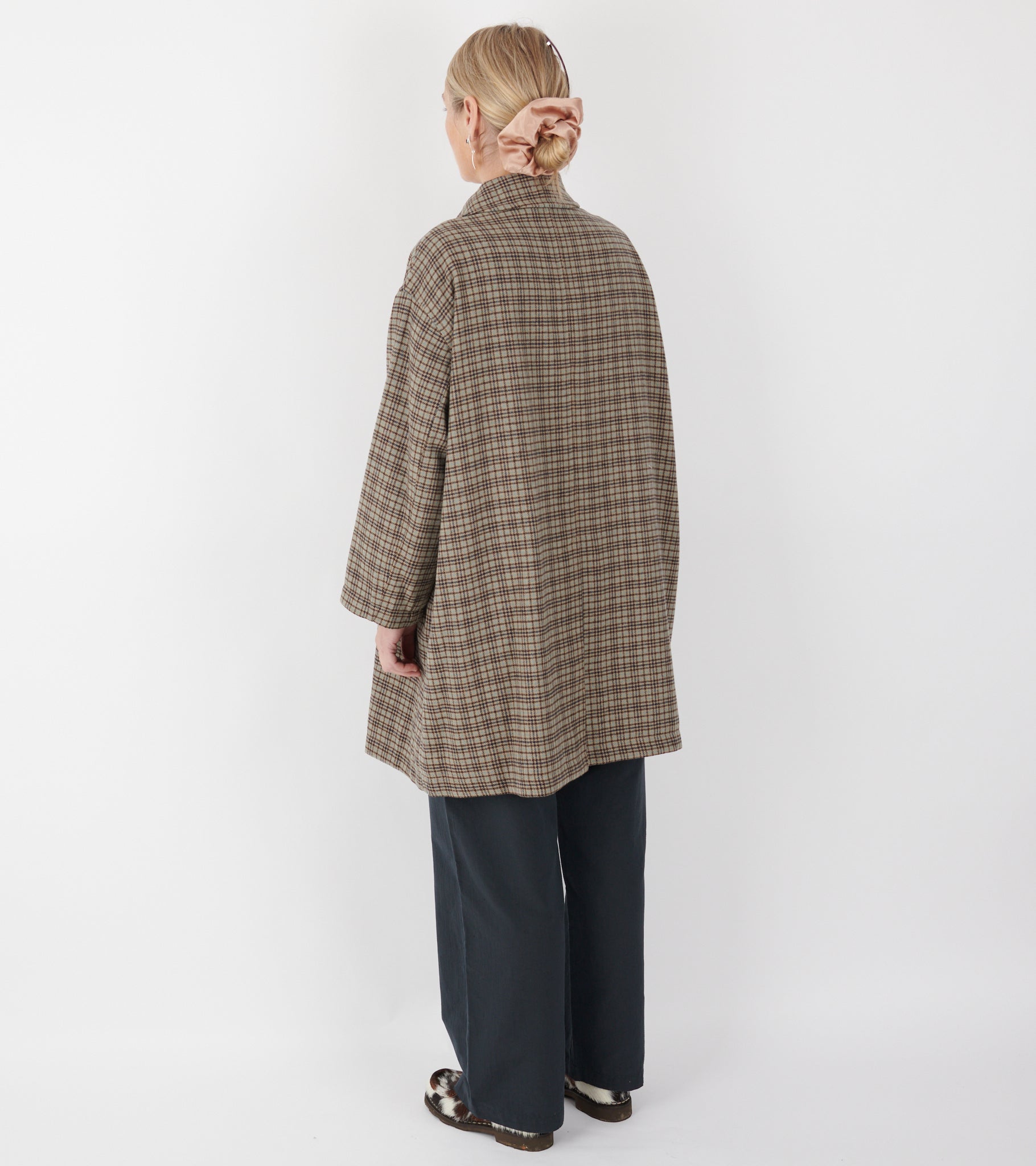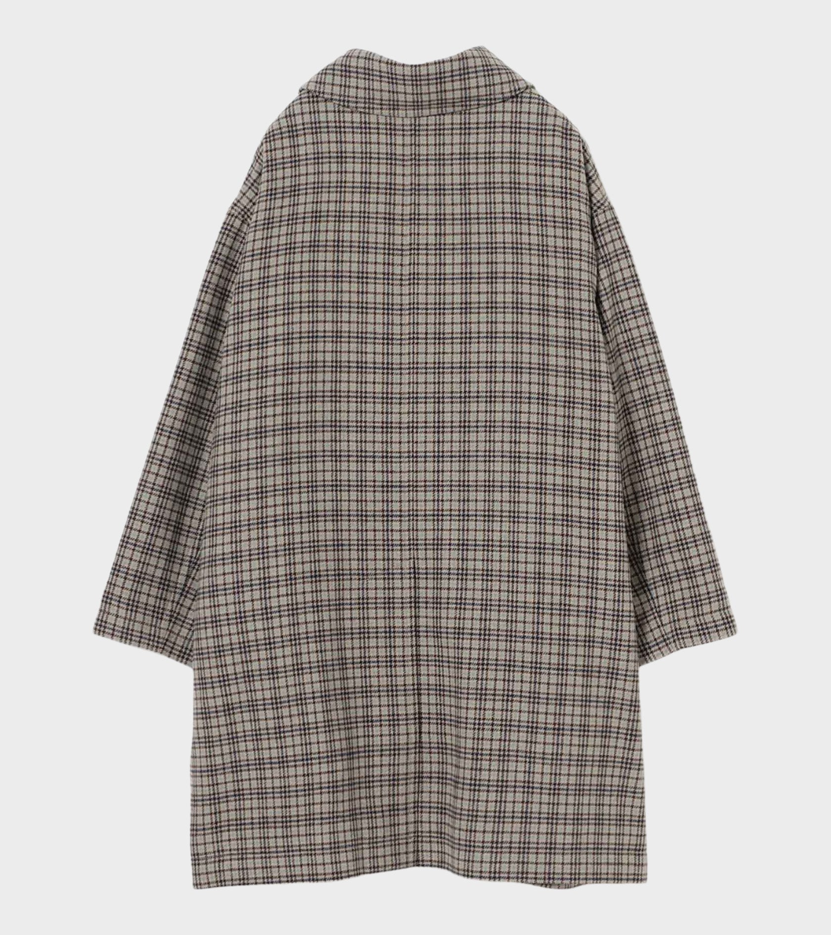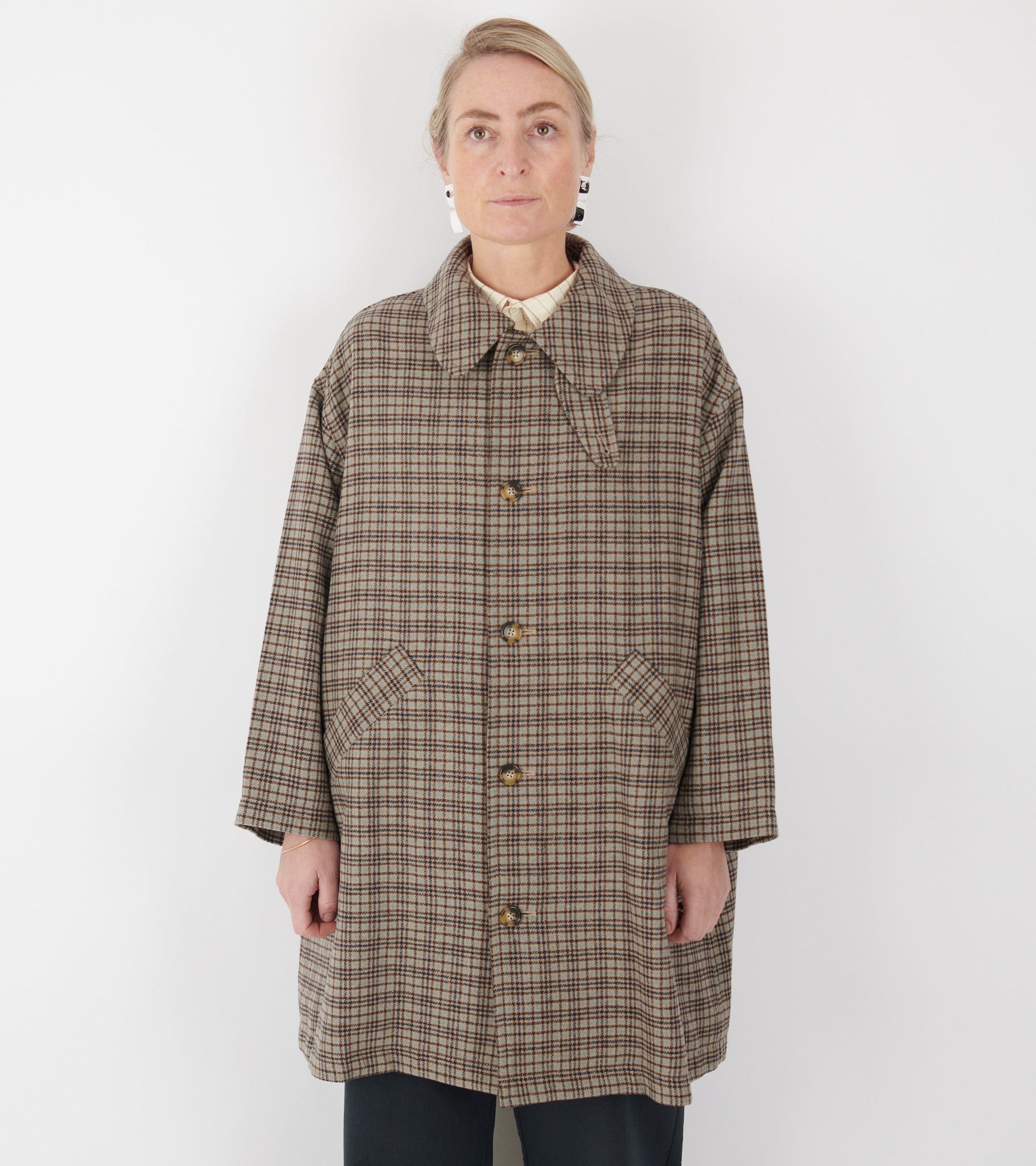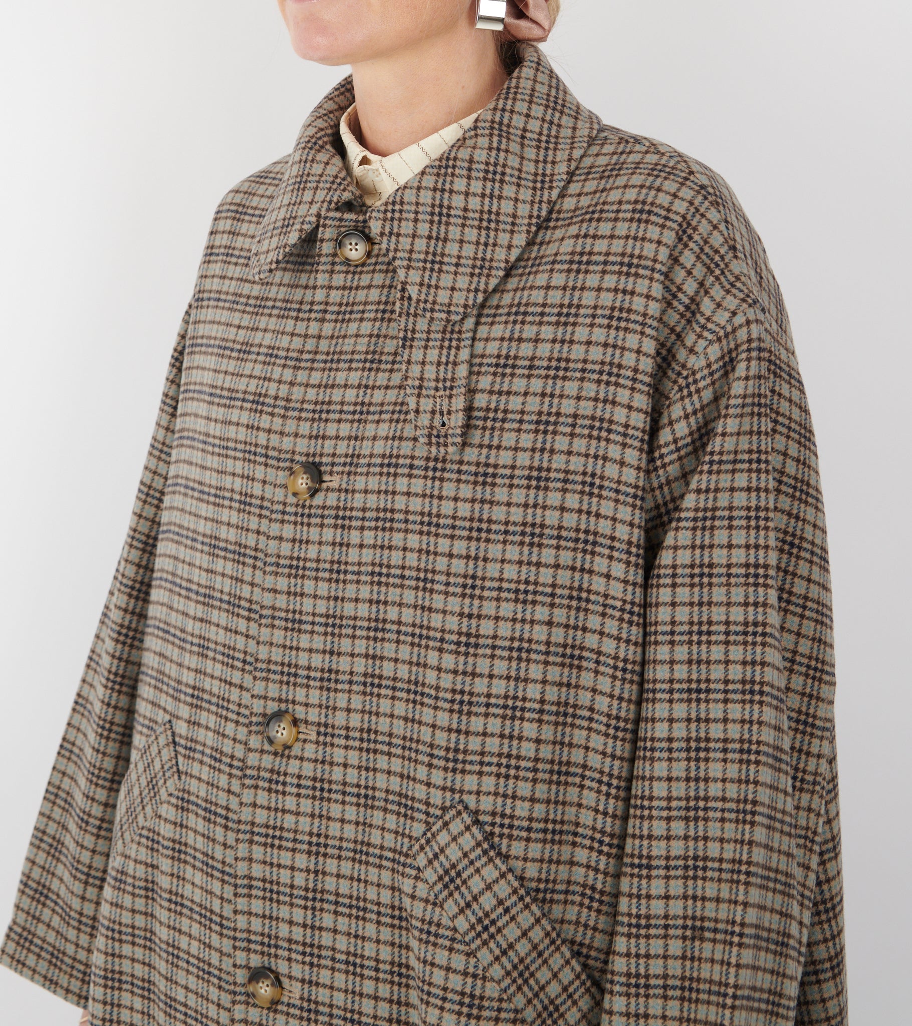 Ternet frakke i en uldblanding fra Beams Boy. Frakken har en stor krave, en storm-flap øverst, en knaplukning samt en skrålomme i hver side.