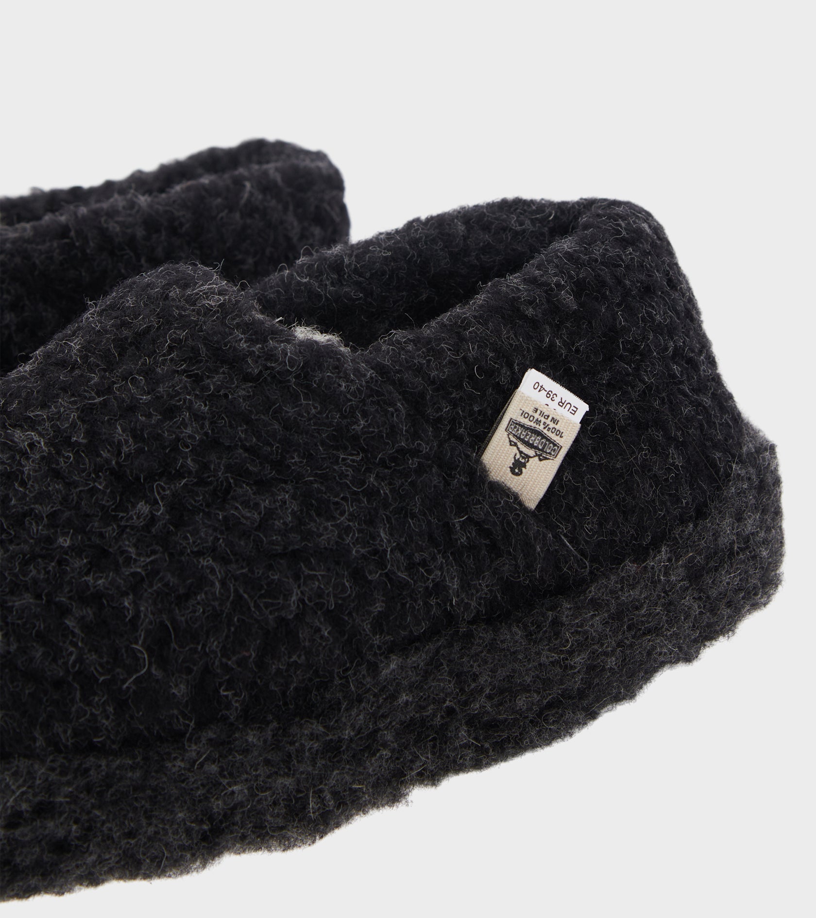 Sorte hjemmesko fra Coldbreaker. Siberian Slippers er fremstillet i irsk langhåret uld fra den irske fabrikant 'Yoko Wool'.