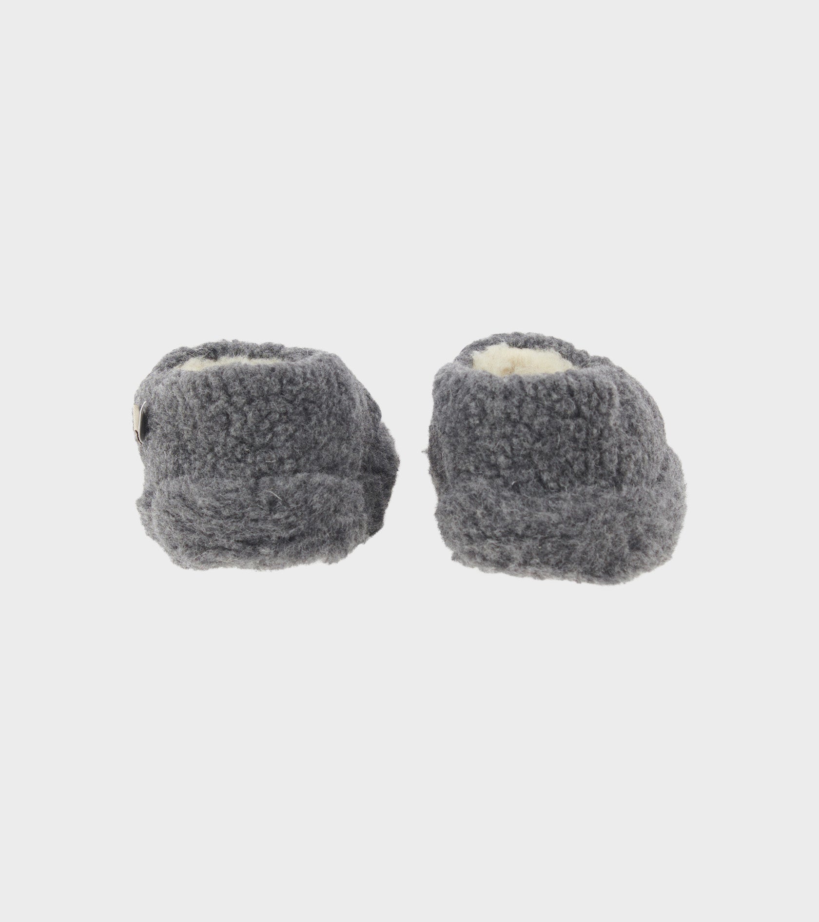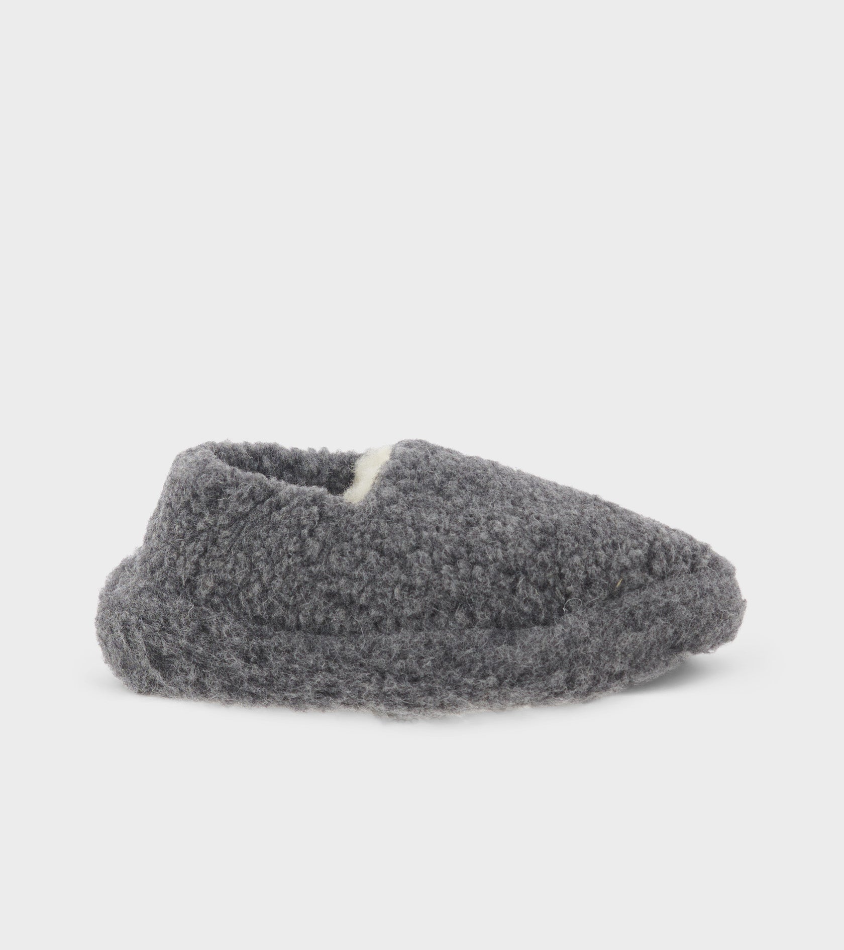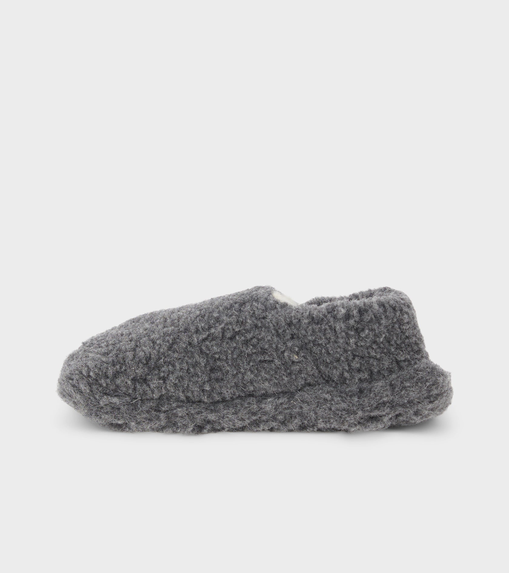 Grå hjemmesko fra Coldbreaker. Siberian Slippers er fremstillet i irsk langhåret uld fra den irske fabrikant 'Yoko Wool'.