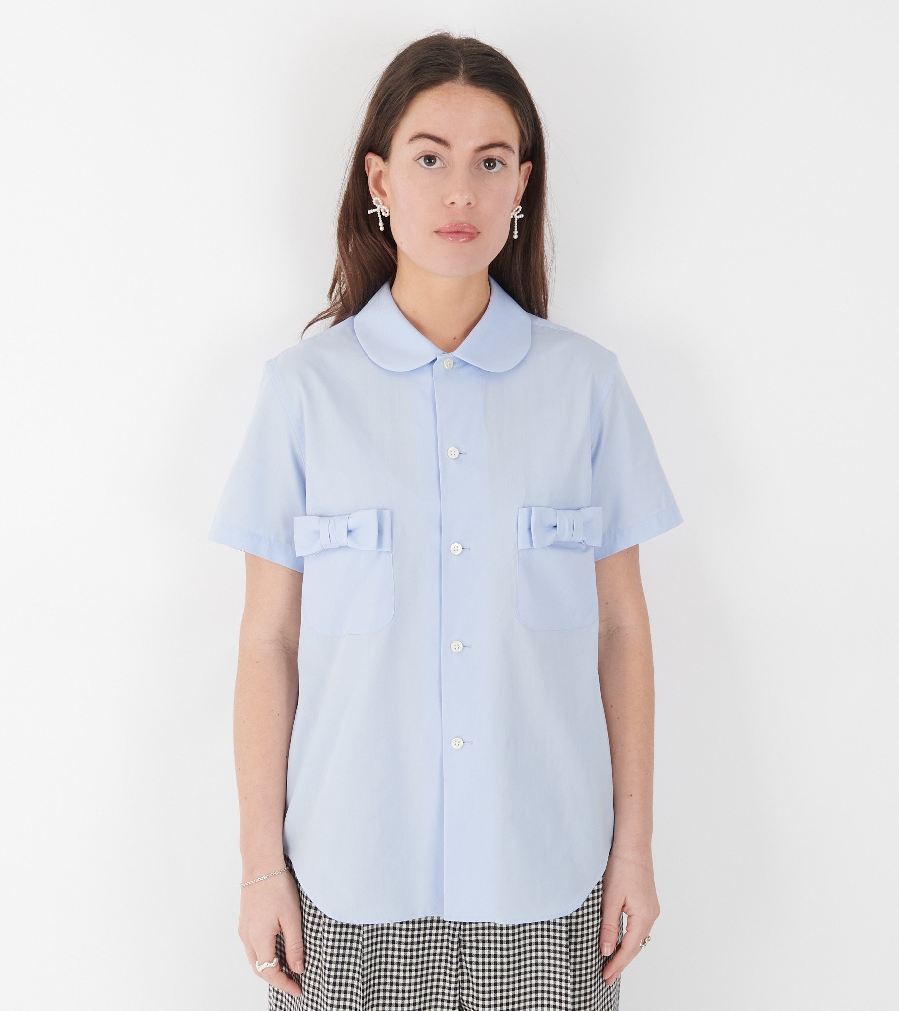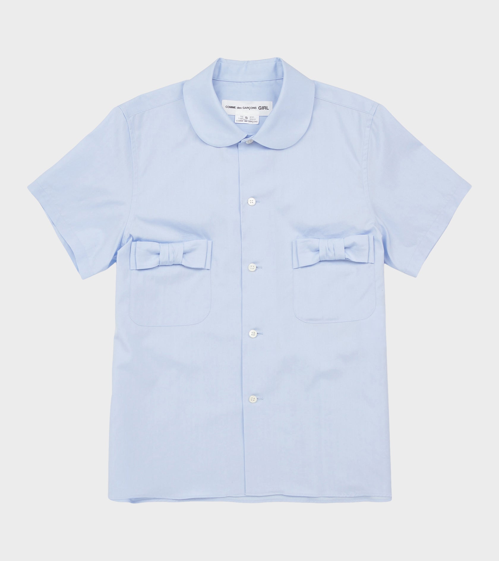 Lyseblå kortærmet skjorte med sløjfedetaljer fra Comme des Garcons Girl.