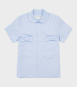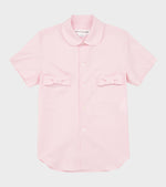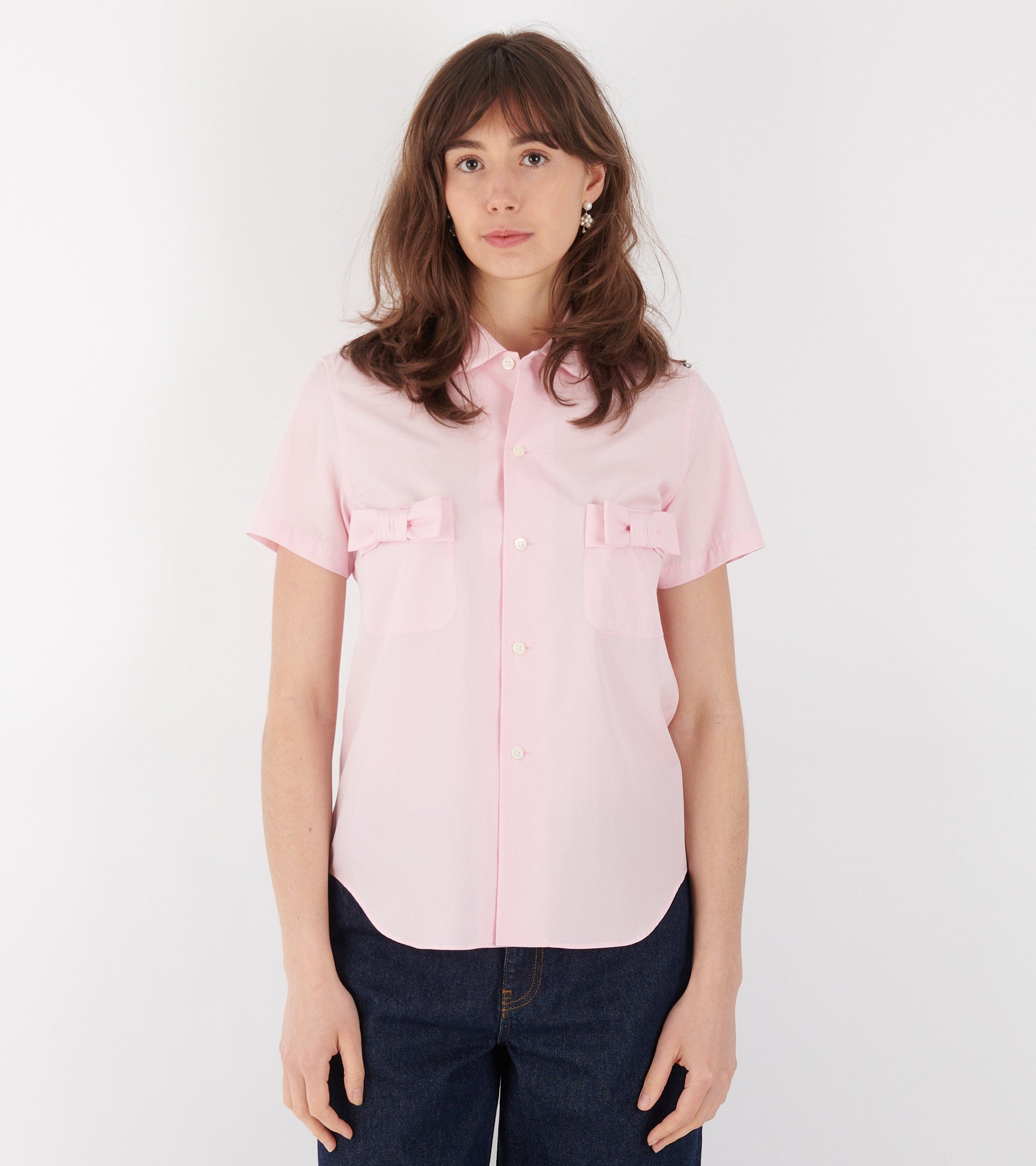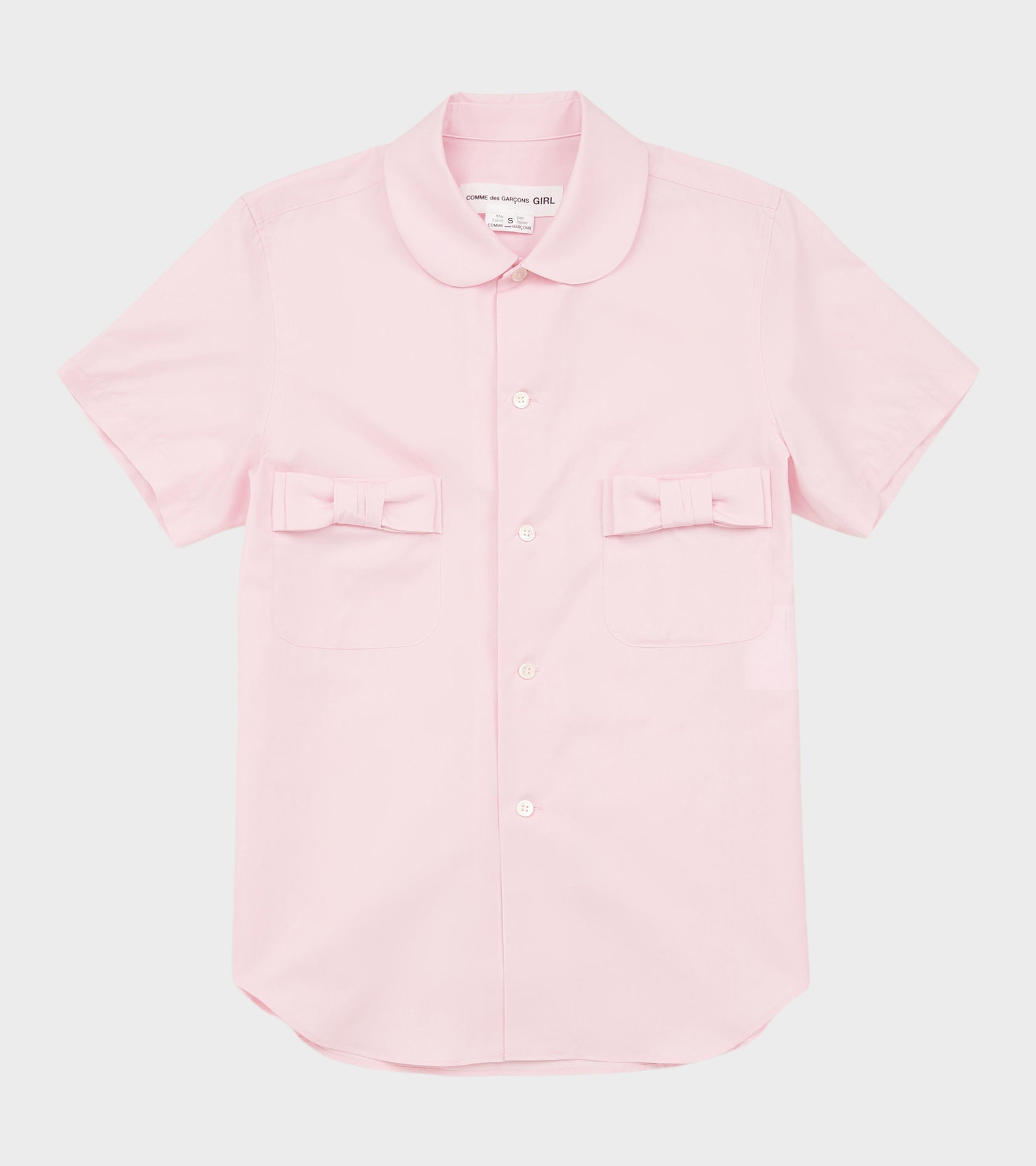 Lyserød kortærmet skjorte med sløjfedetaljer fra Comme des Garcons Girl.