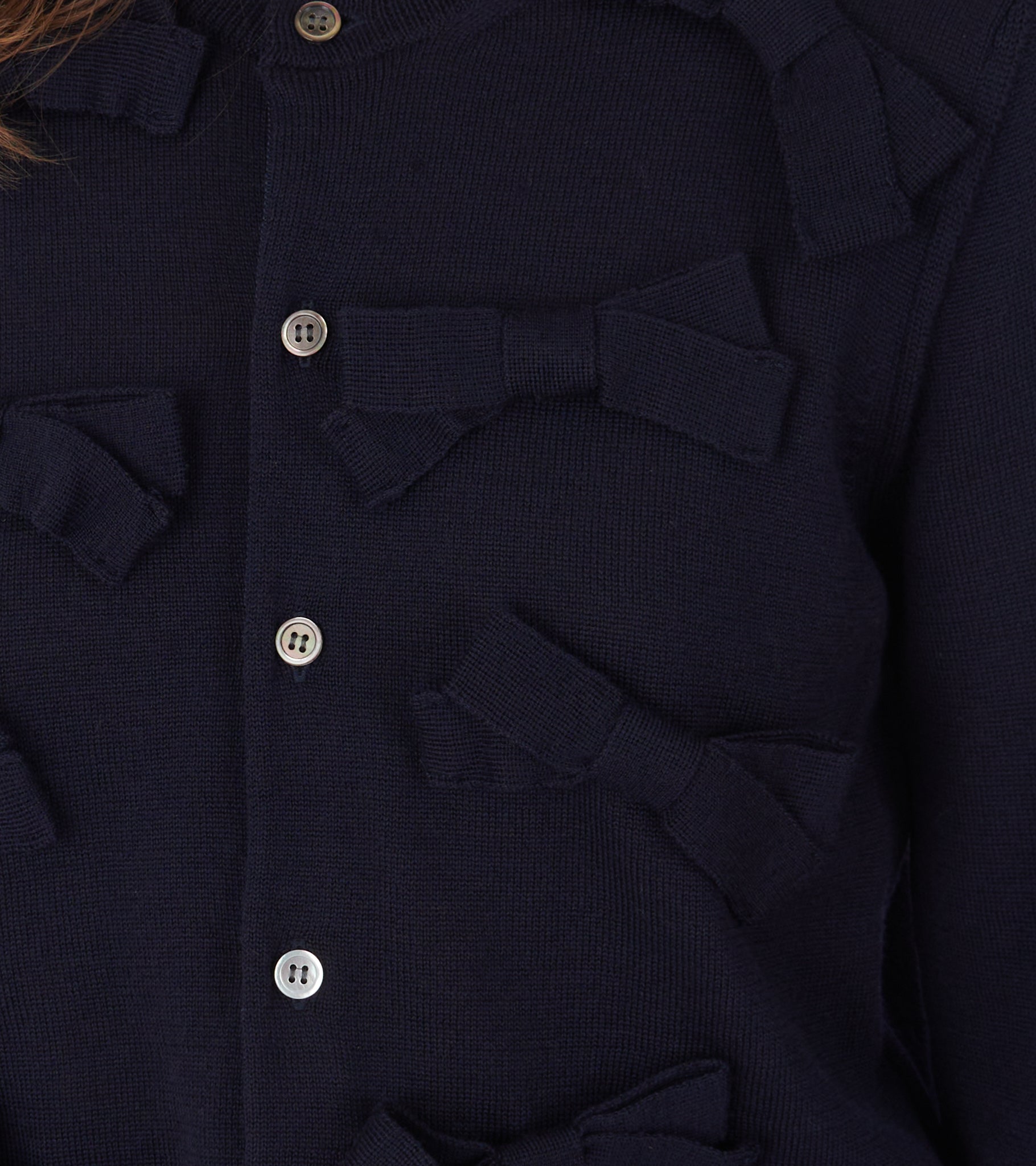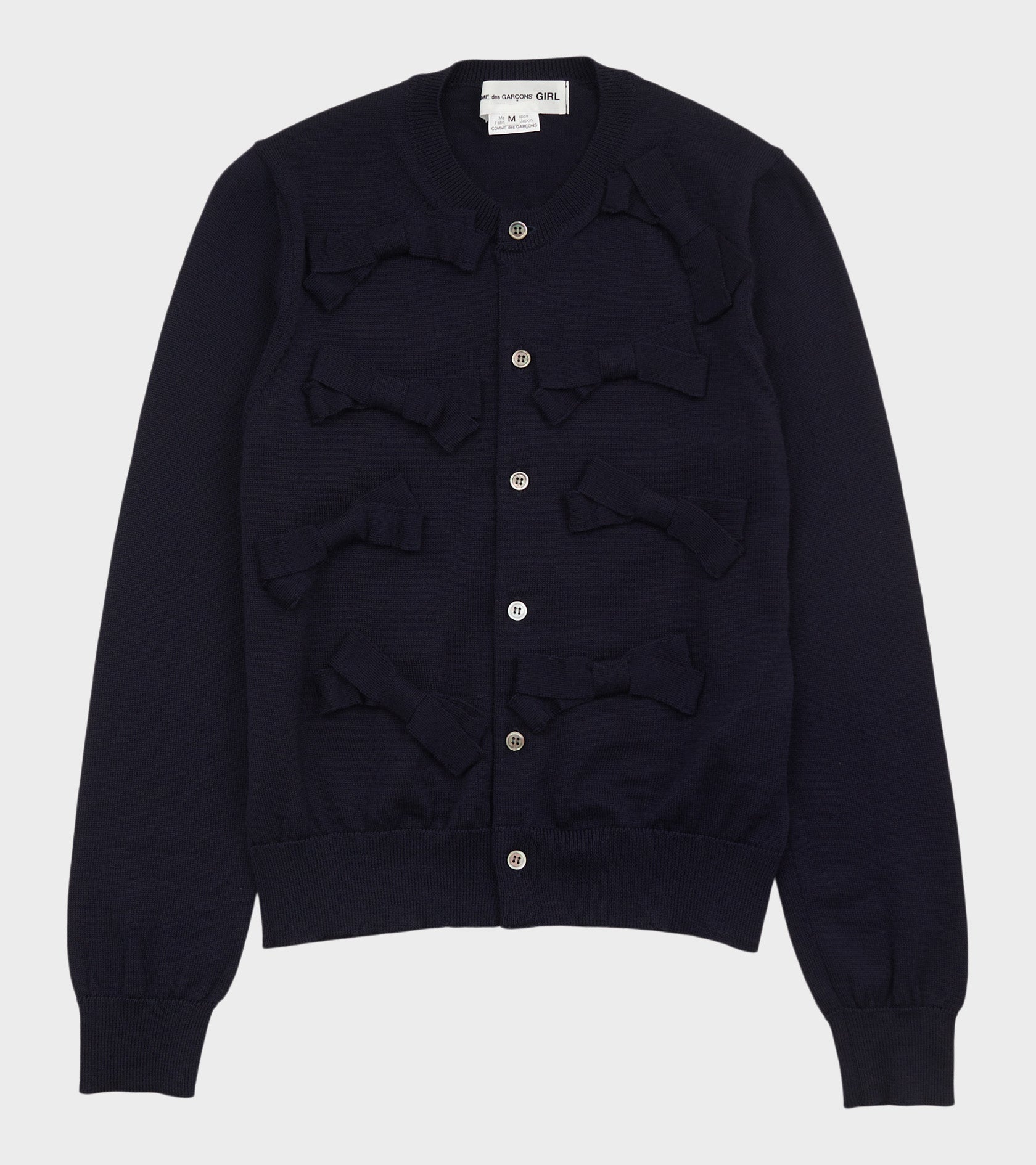 Strikket blå cardigan med sløjfer fra Comme des Garcons Girl.
