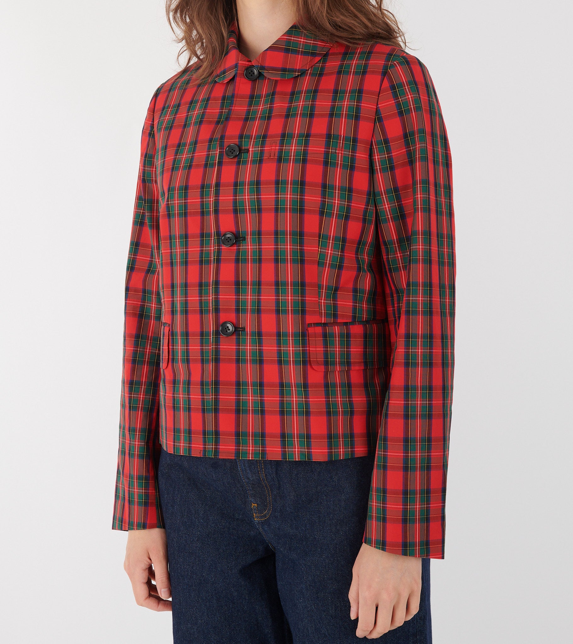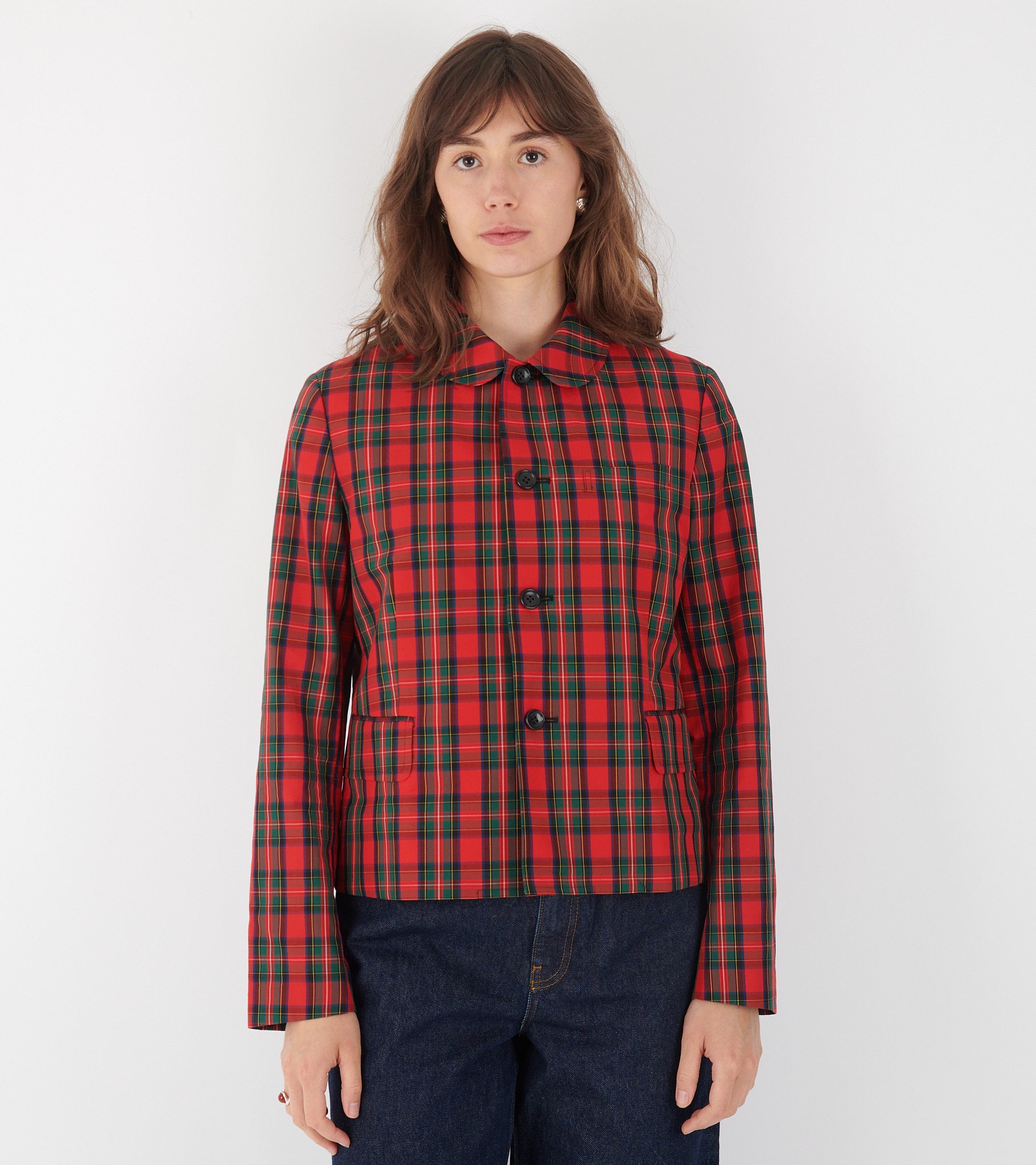Checkered Round Collar Blazer Red/Green