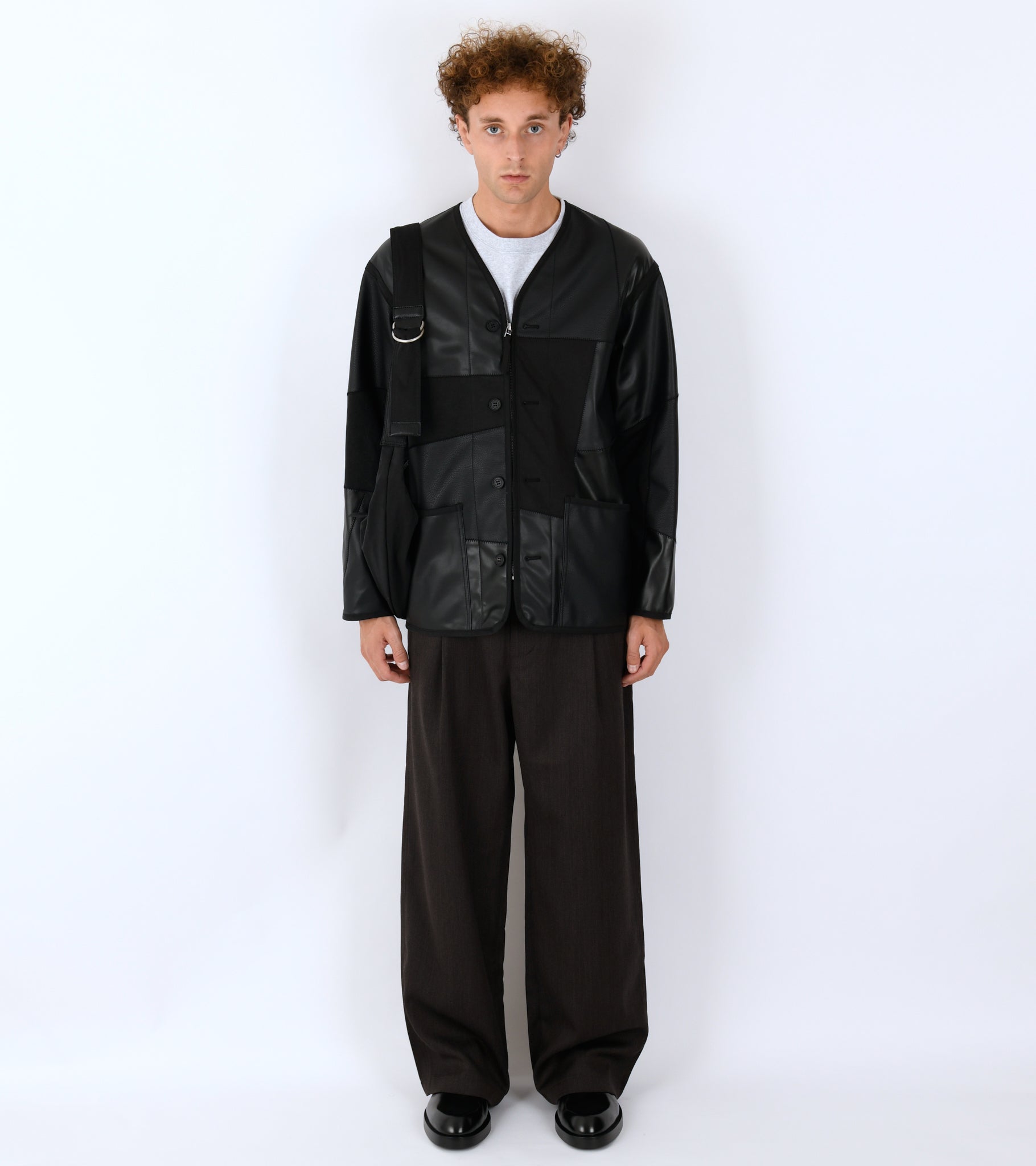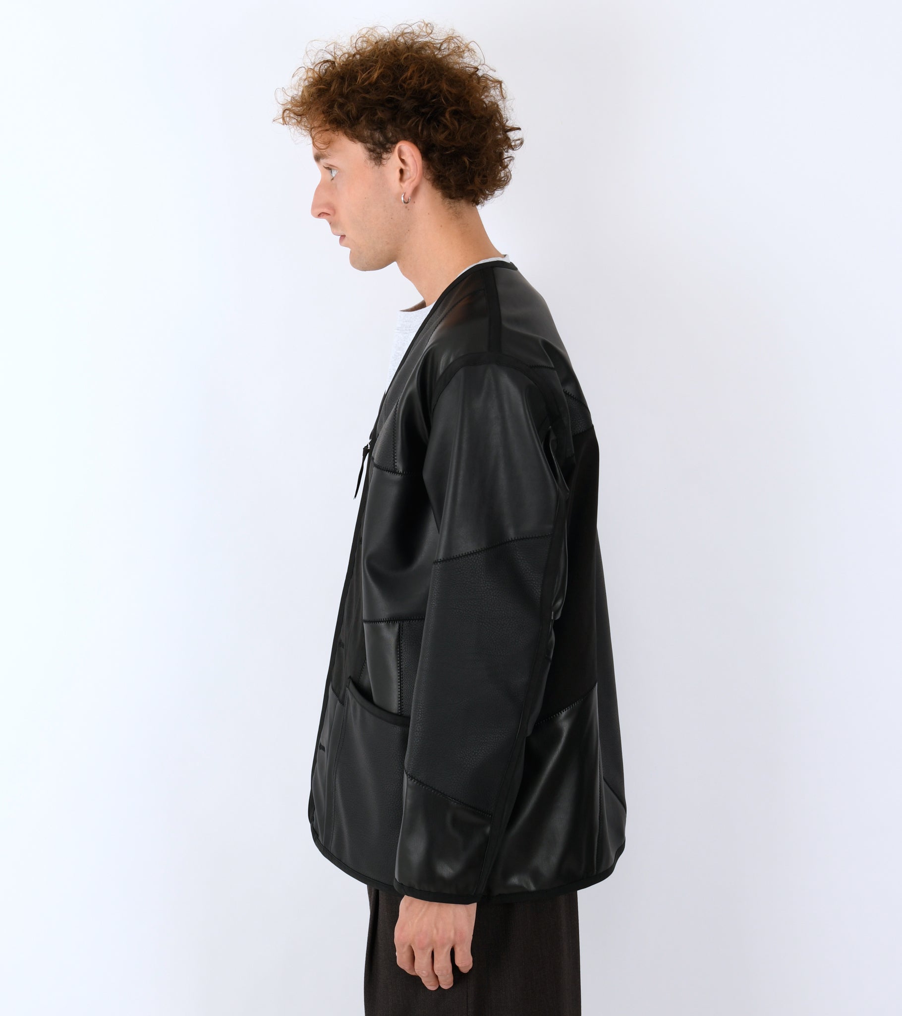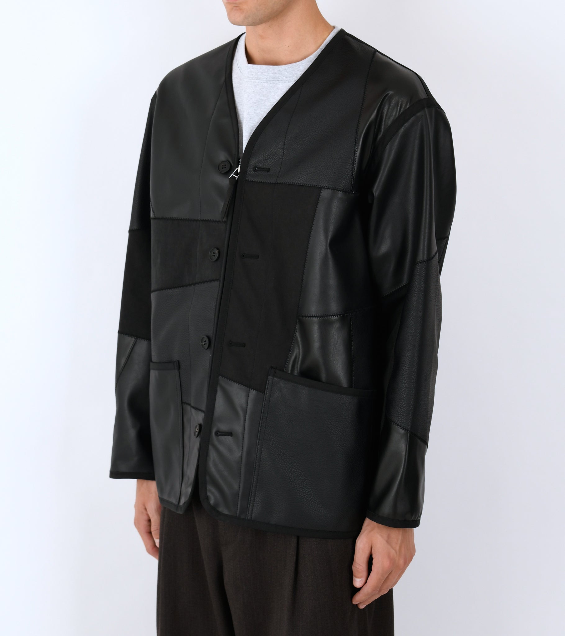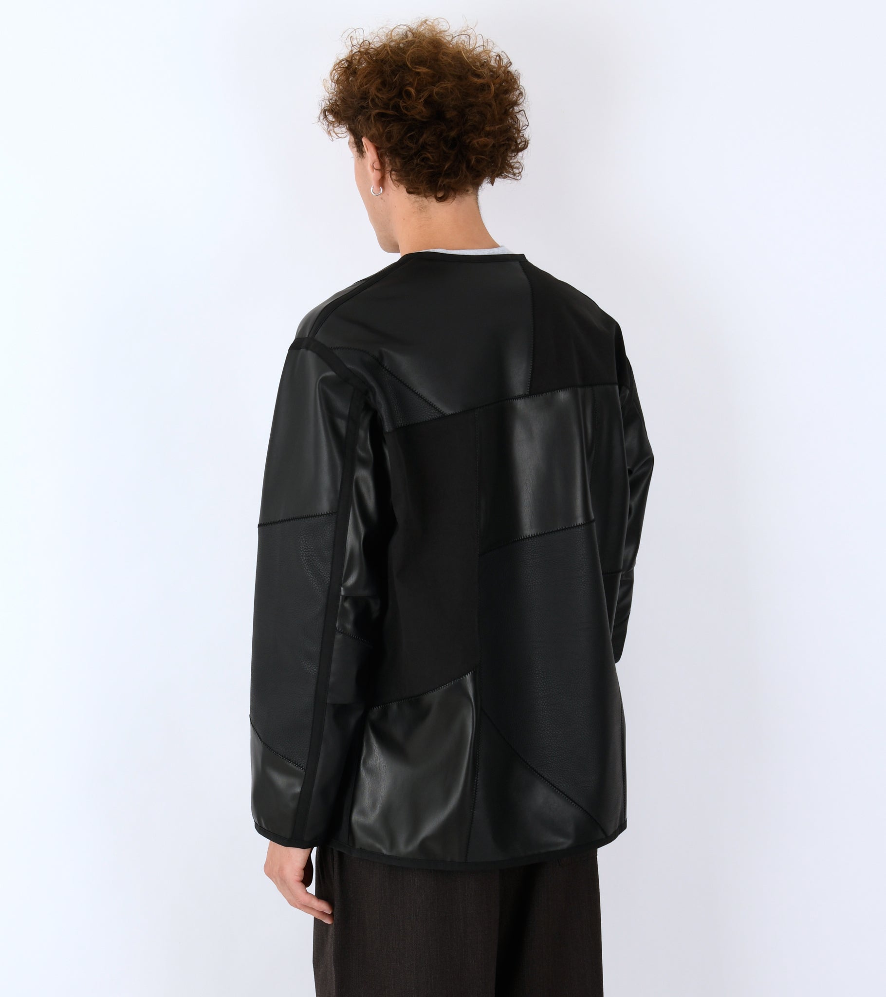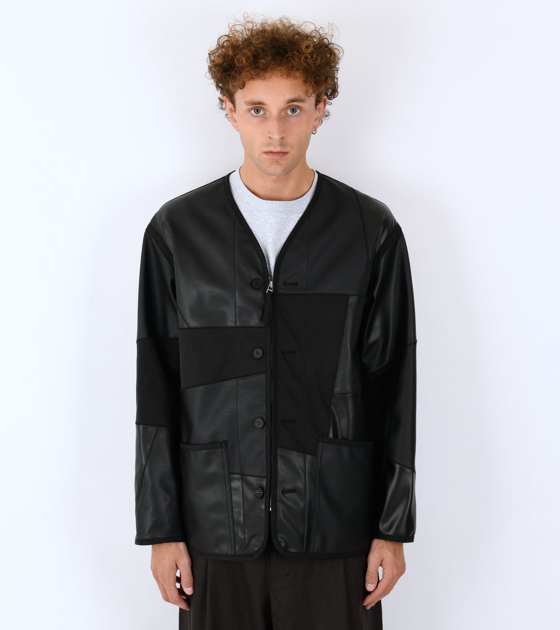 Sort patchwork jakke i syntetisk læder fra Comme des Garcons Homme.