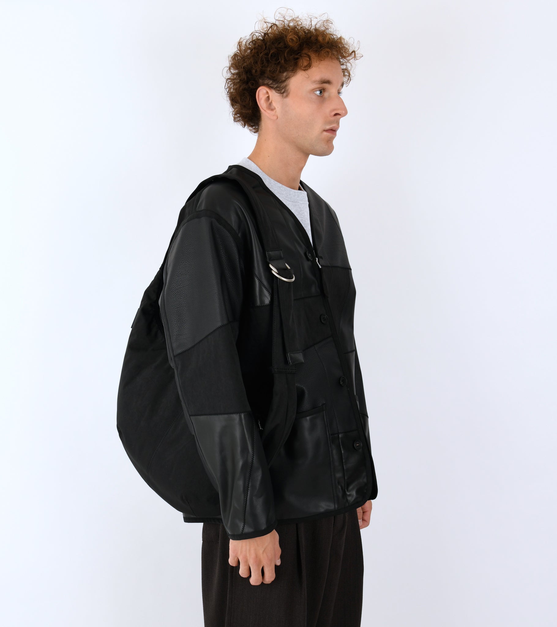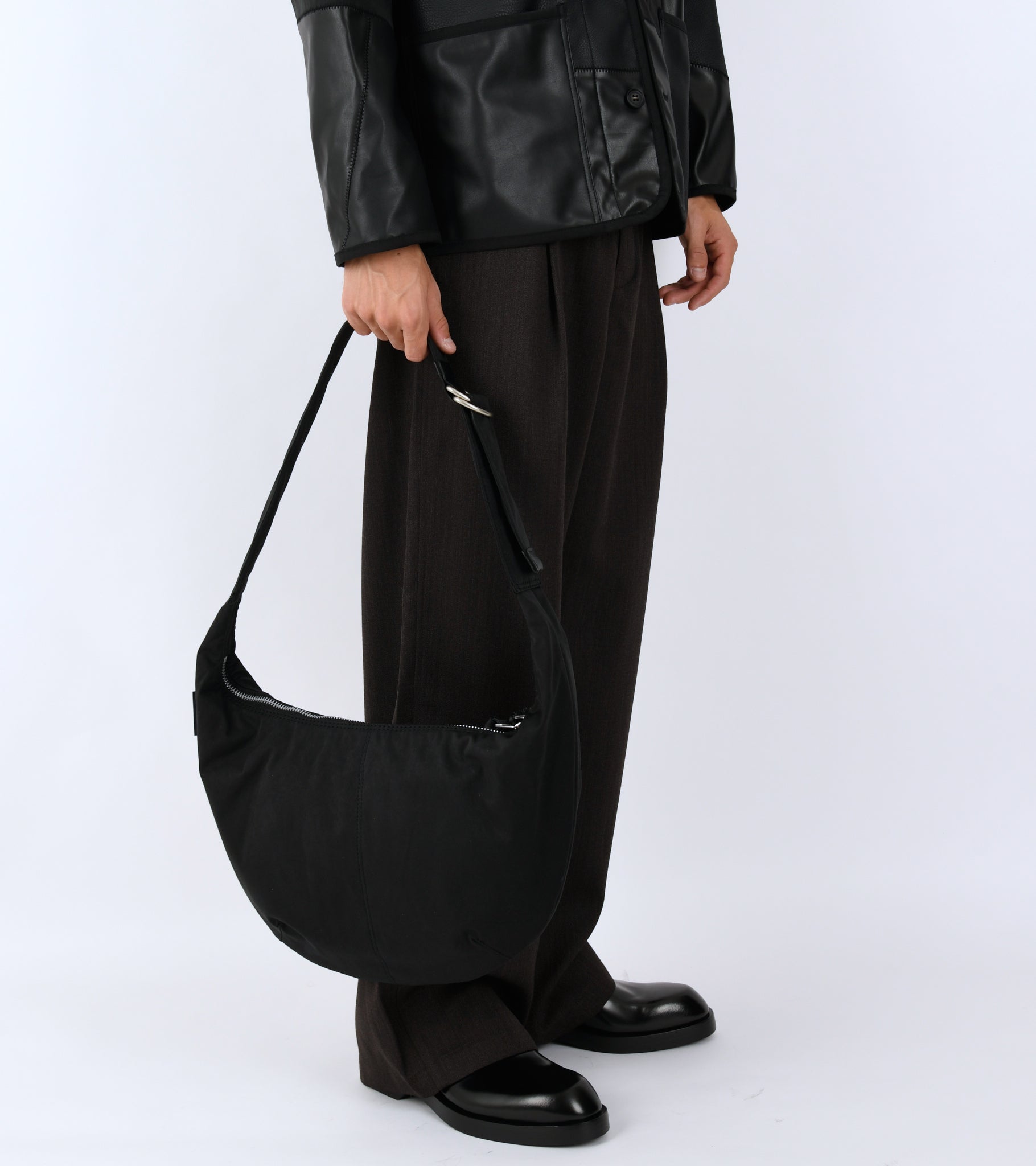 Sort skuldertaske i polyester fra Comme des Garcons Homme. Tasken har en justerbar strop og lynlås åbning. Indvendig har tasken et stort rum og en inderlomme.
