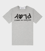 Hvid unisex t-shirt fra Comme des Garcons PLAY med mærkets karakteristiske hjerte med øjne. Det ikoniske hjerte med øjnene fra PLAY er designet af Filip Pagowski og er gennemgående på alle PLAY produkter. Denne t-shirt har sort logoprint på fronten.