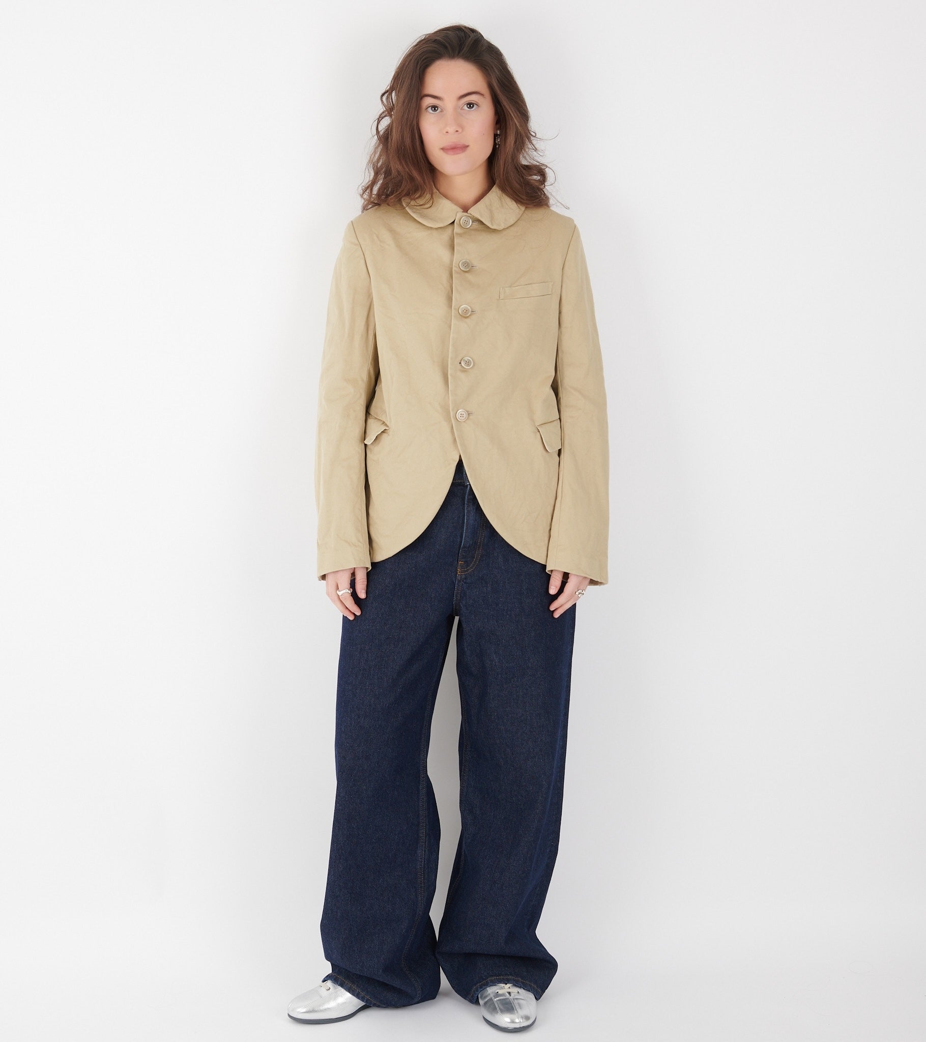 Beige blazer med en rund krave fra Comme des Garcons.