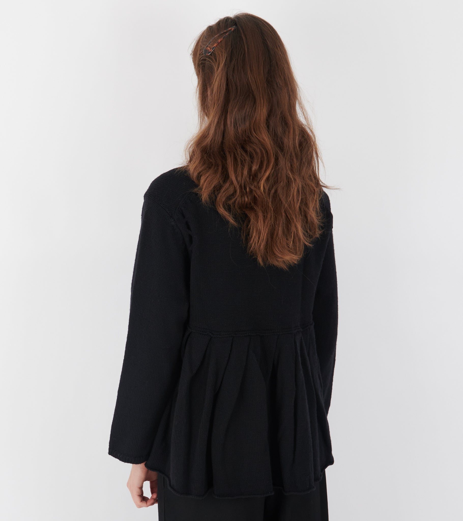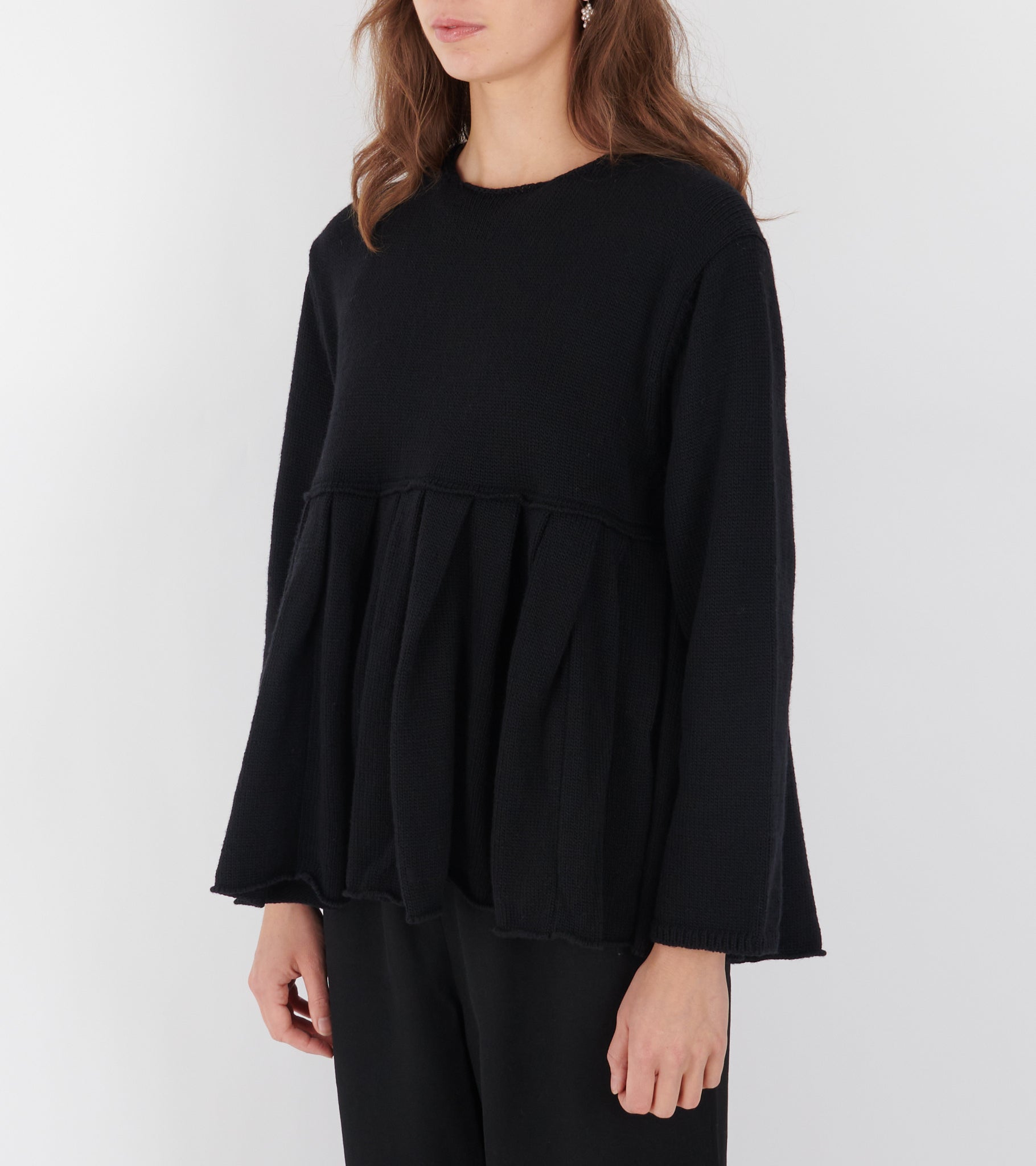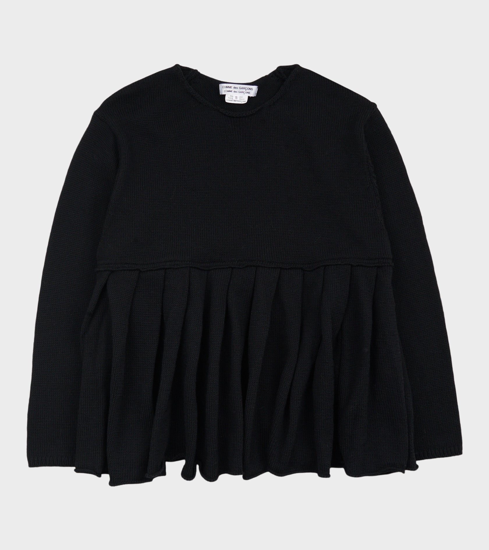 Sort strik i uld fra Comme des Garcons. Strikken har en rund hals og et 'skørt' nederst.