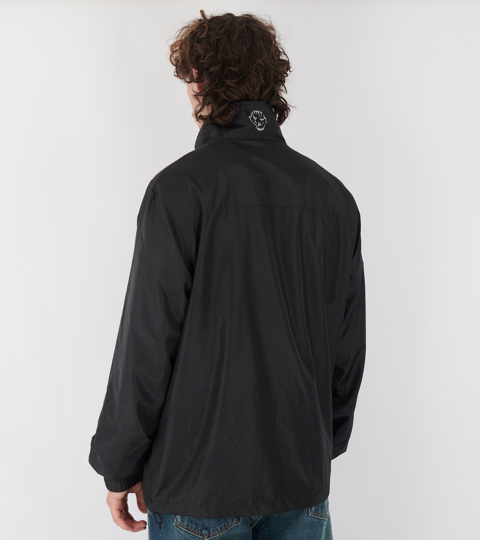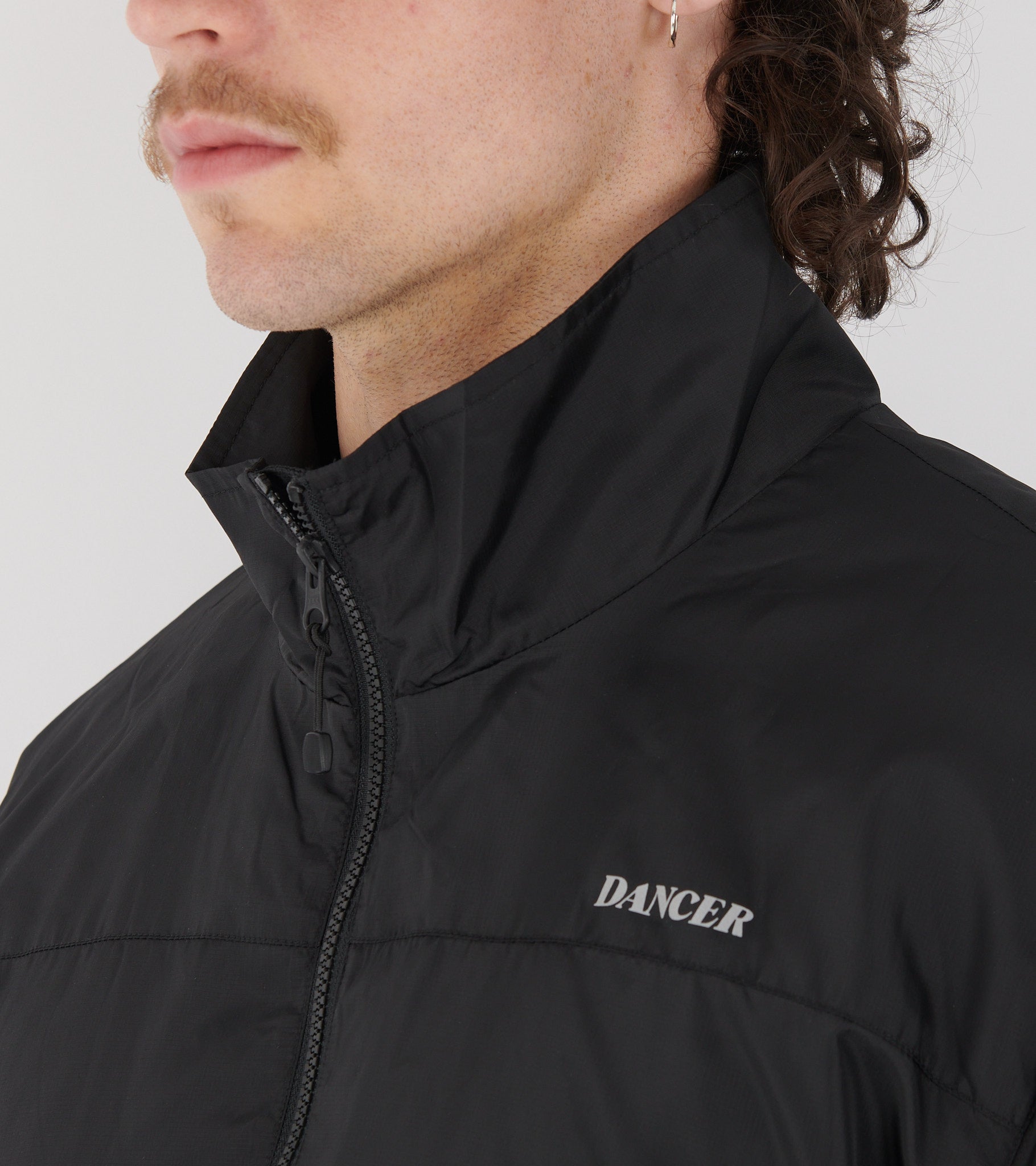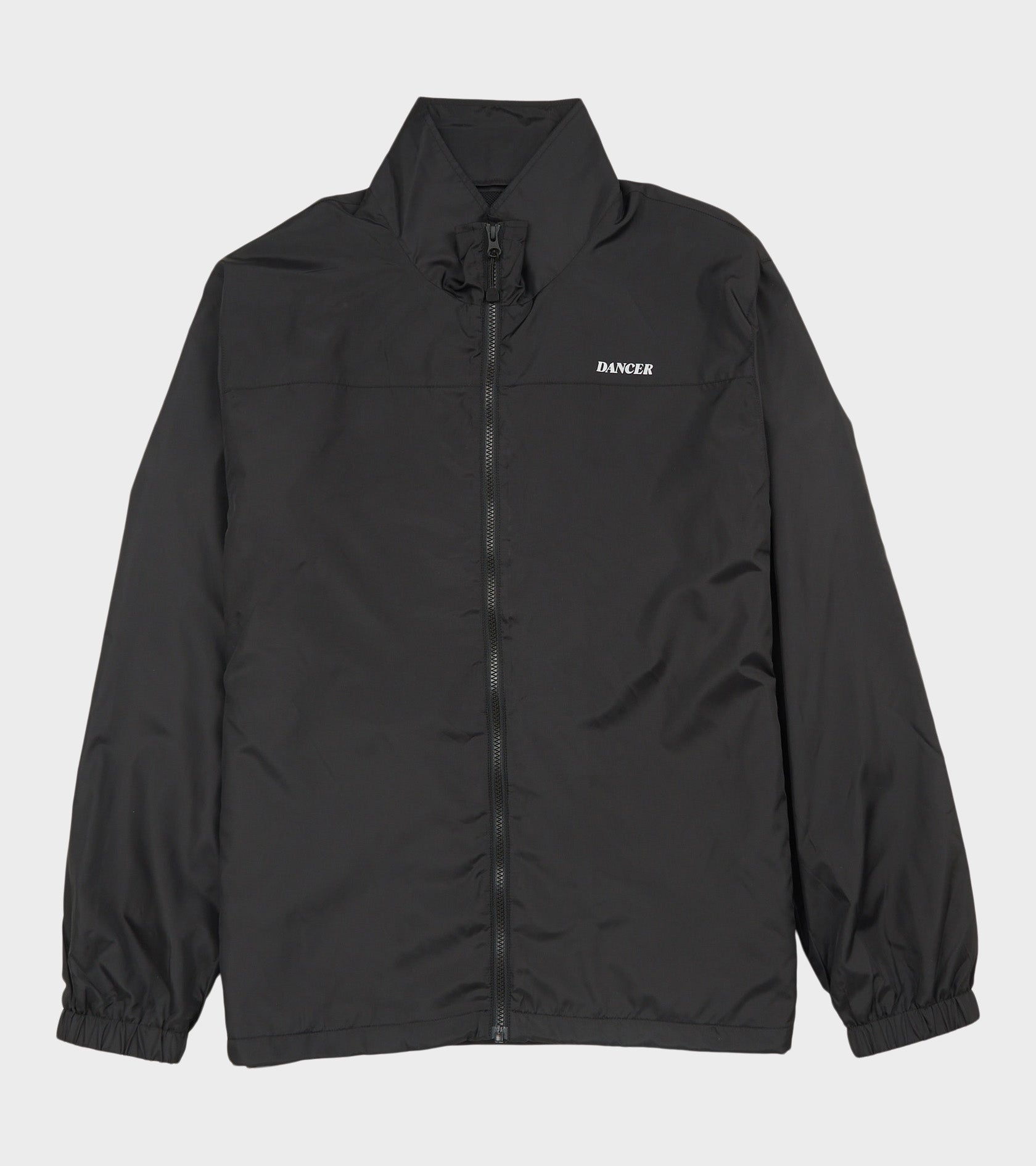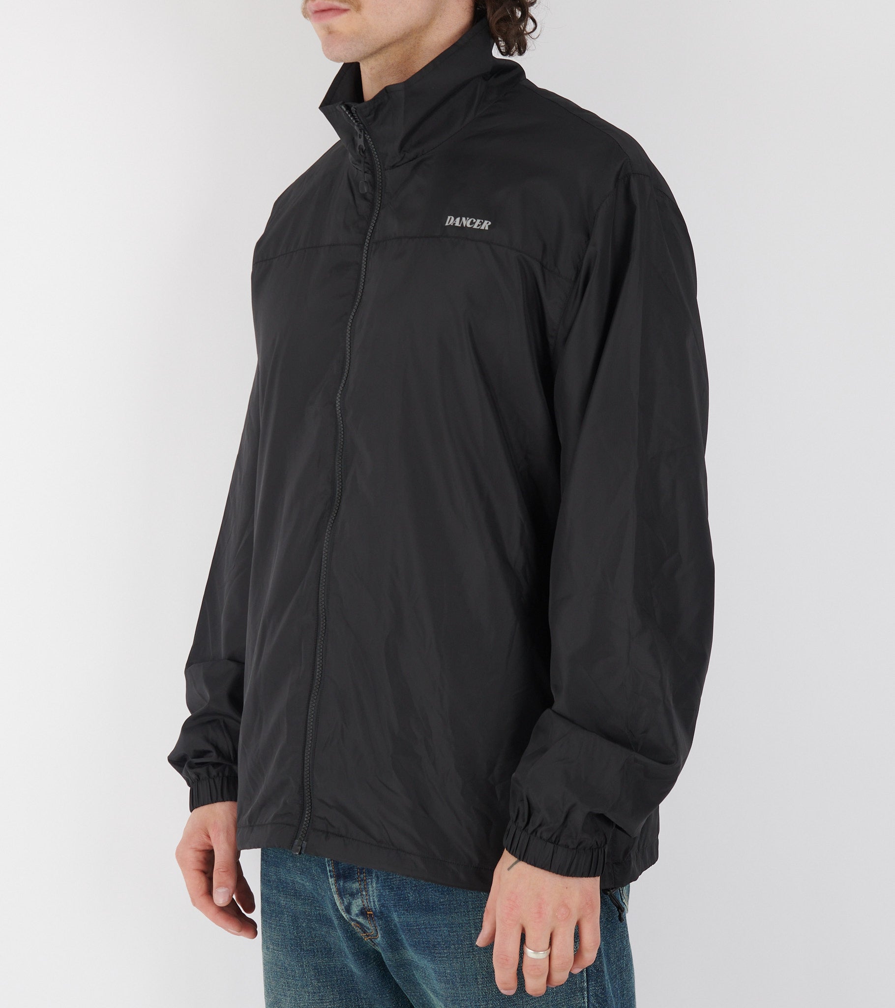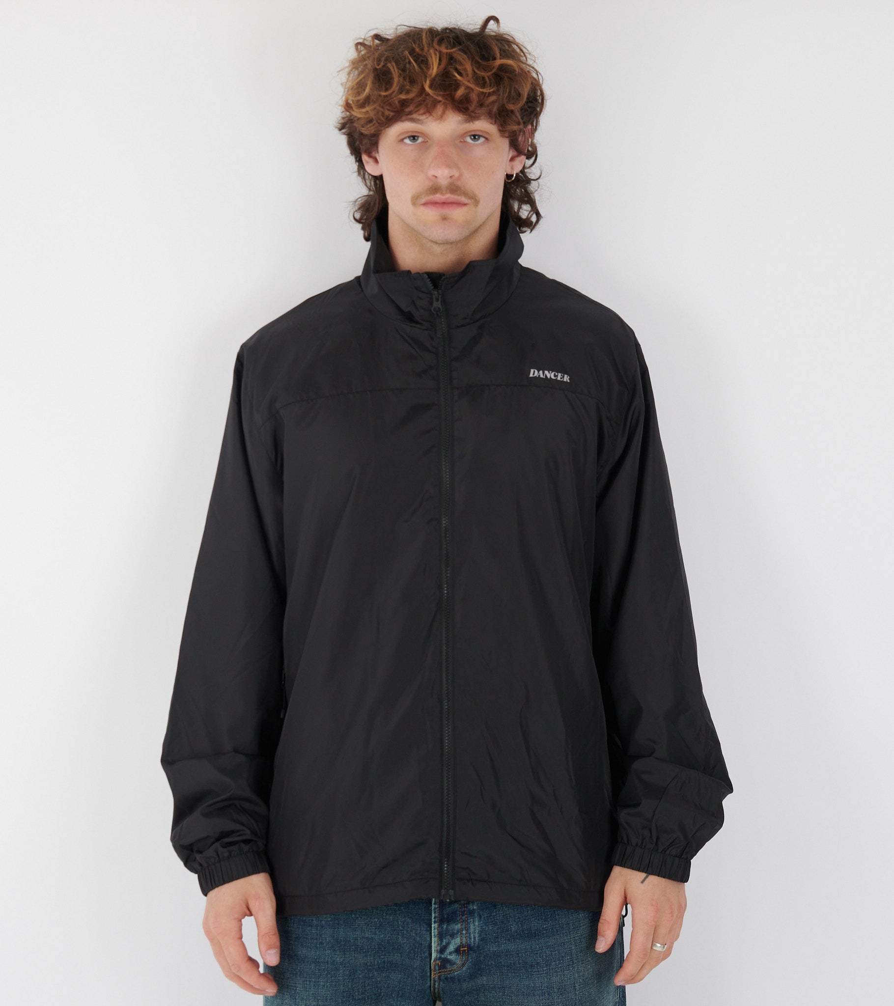 Sort vindjakke i nylon fra Dancer. Jakken har en lynlåslukning, en lynlåslomme i hver side og et printet refleks-logo ved venstre bryst. Øverst bagpå er et logo. I bunden af jakken er en indvendig elastikkant, så den kan reguleres i vidden.