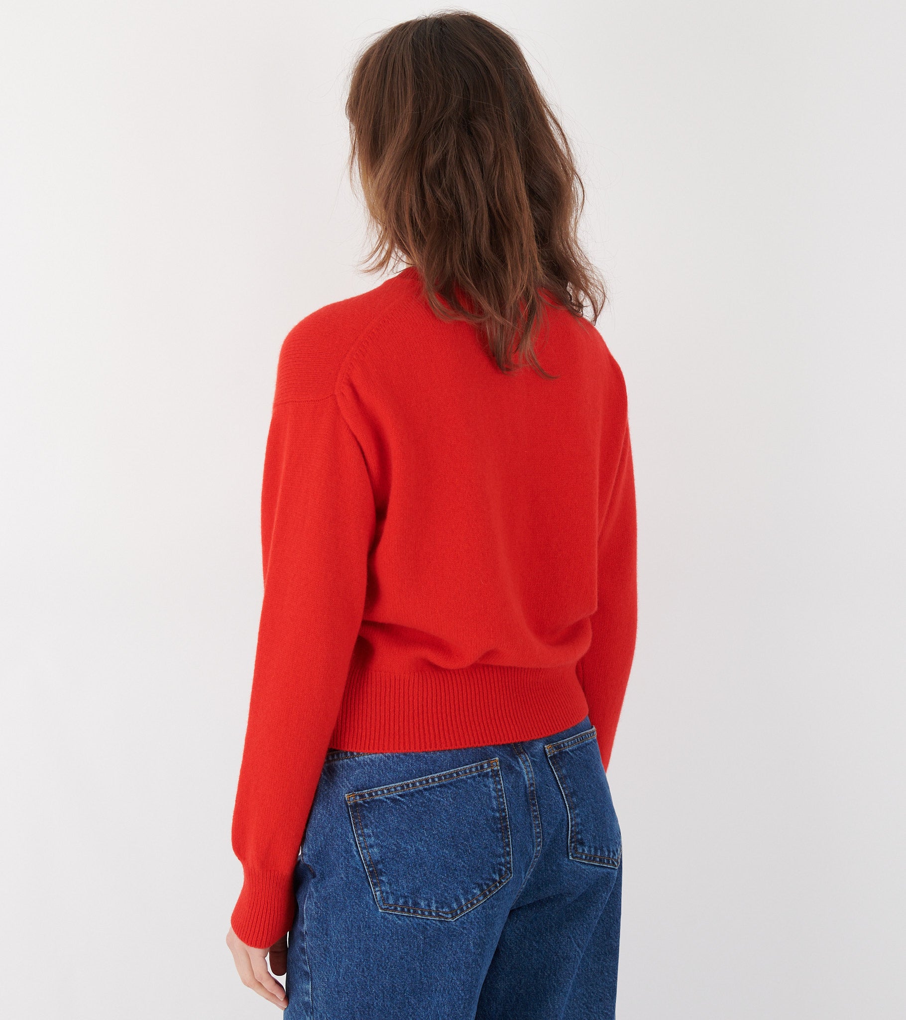 Rød strikket cardigan i lammeuld fra &Daugther.