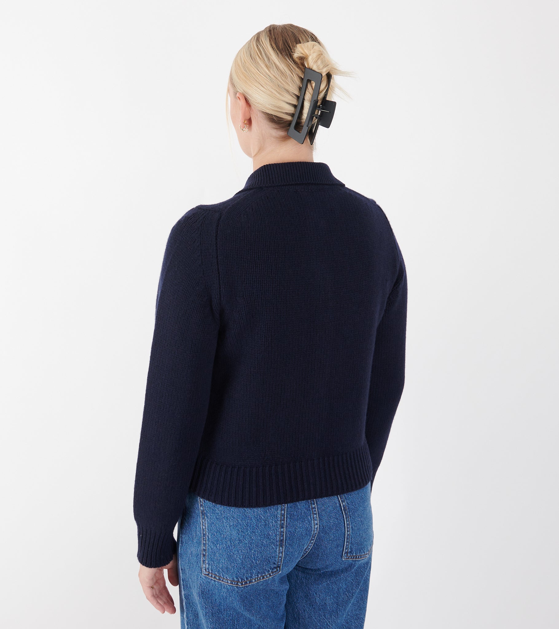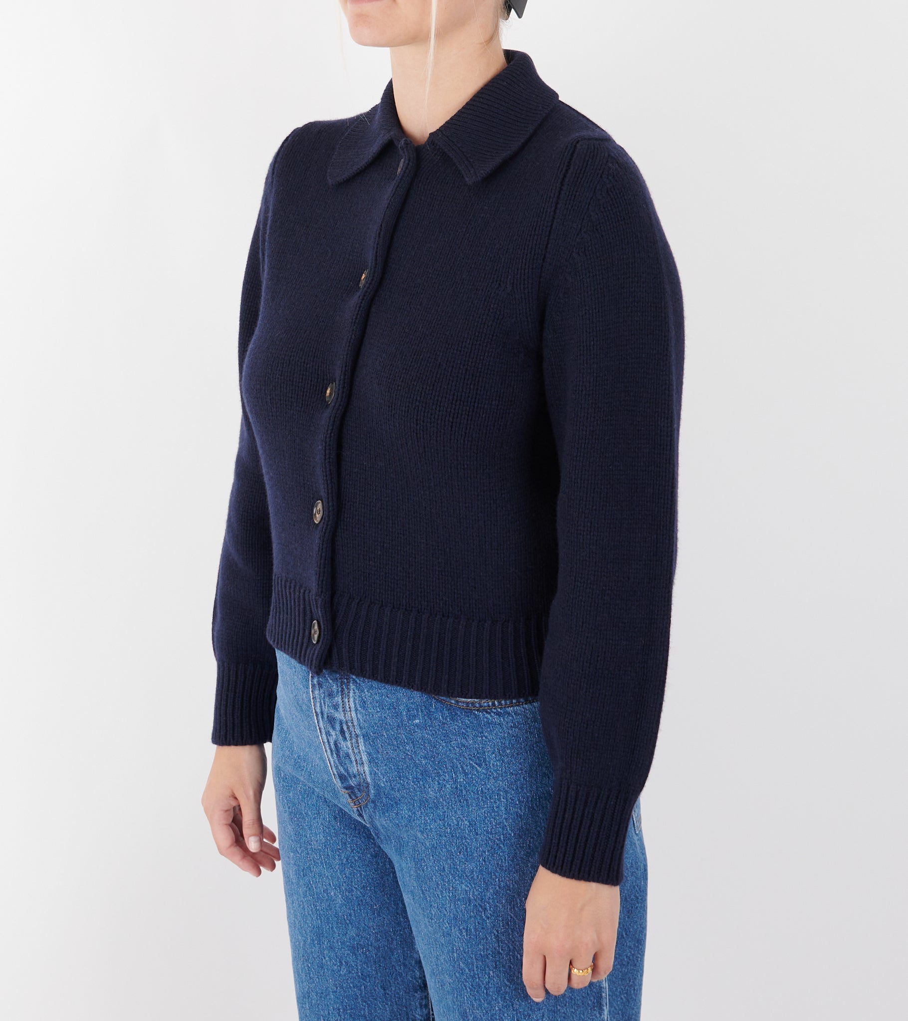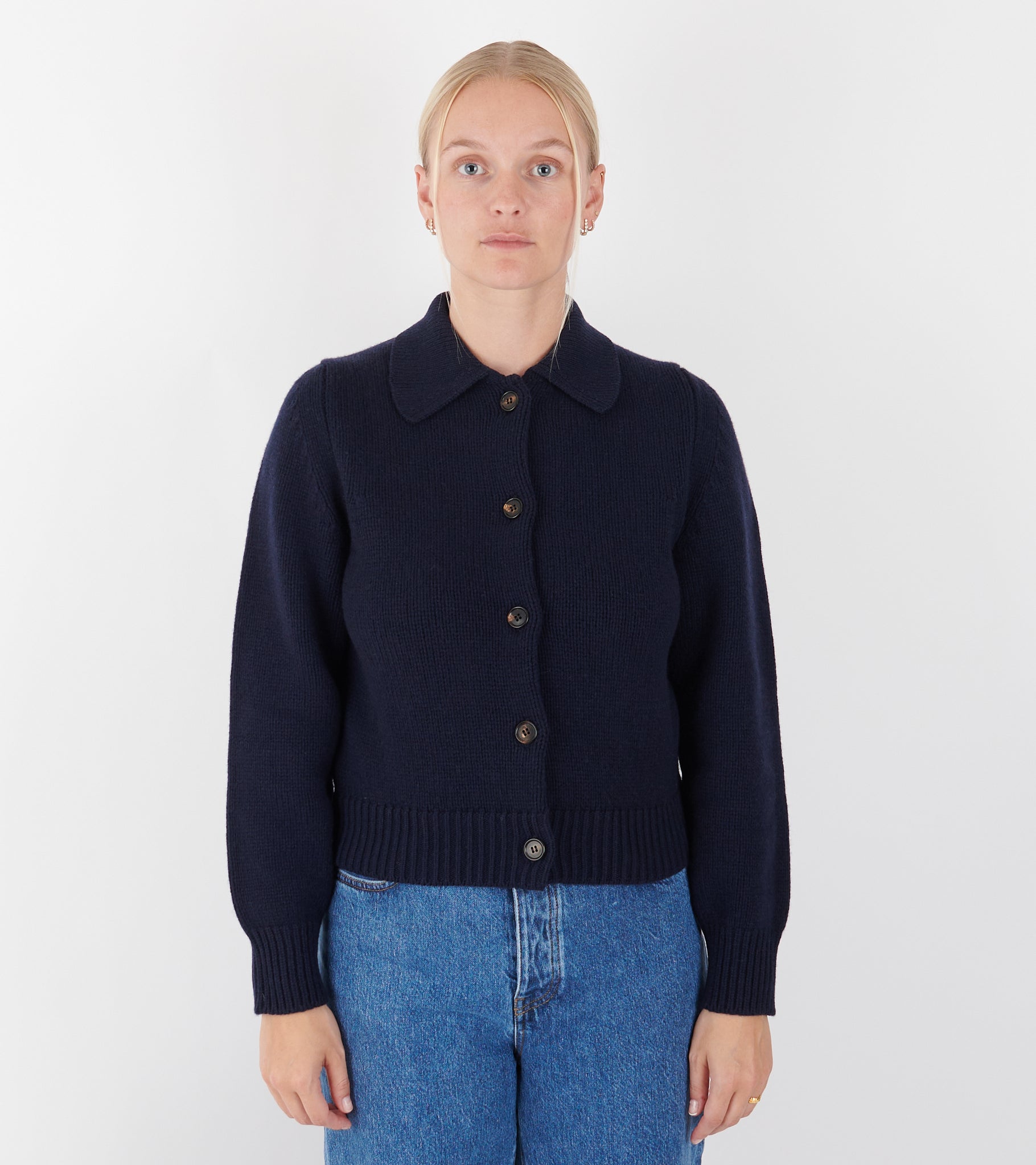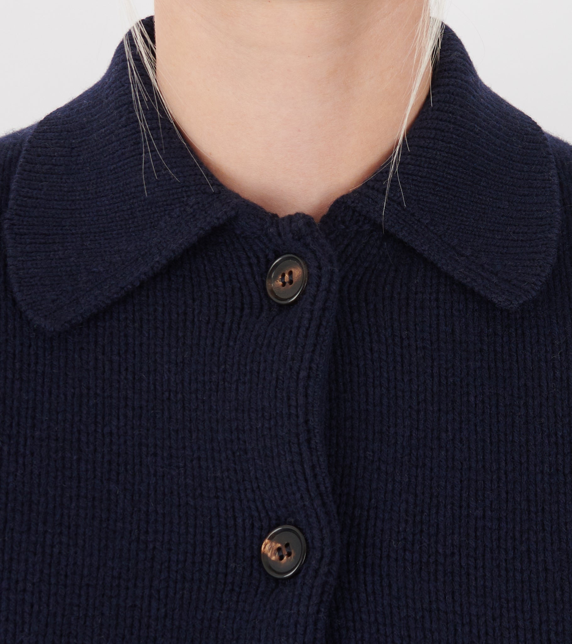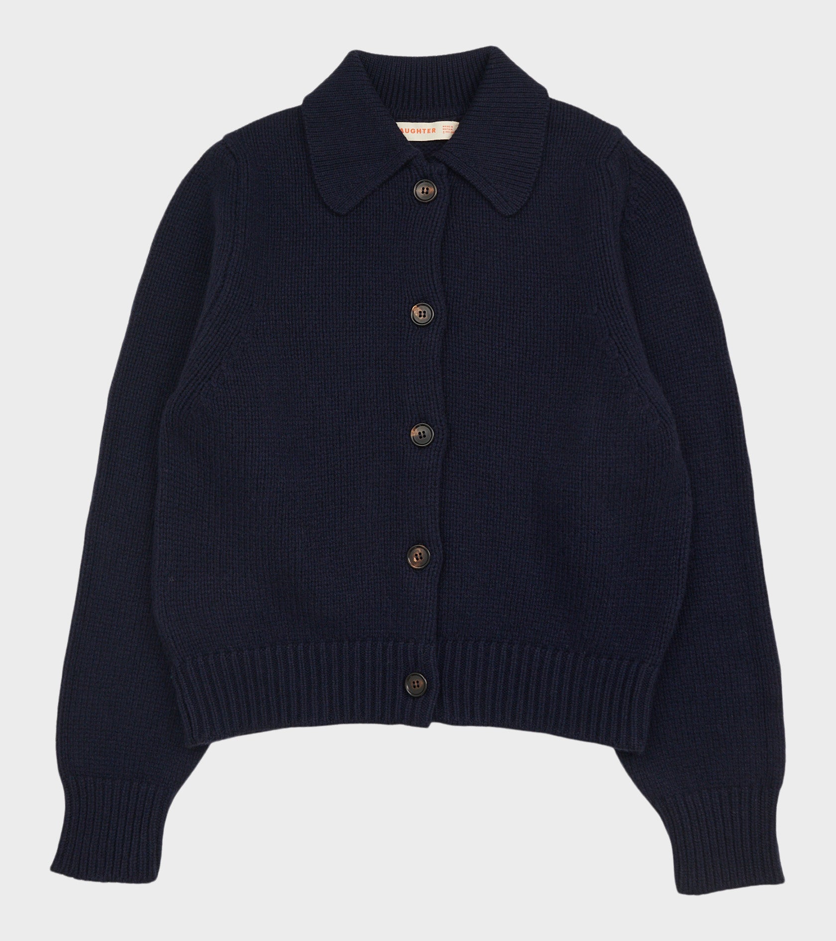 Navy strikket cardigan jakke i en uld/kashmir blanding fra &Daughter.