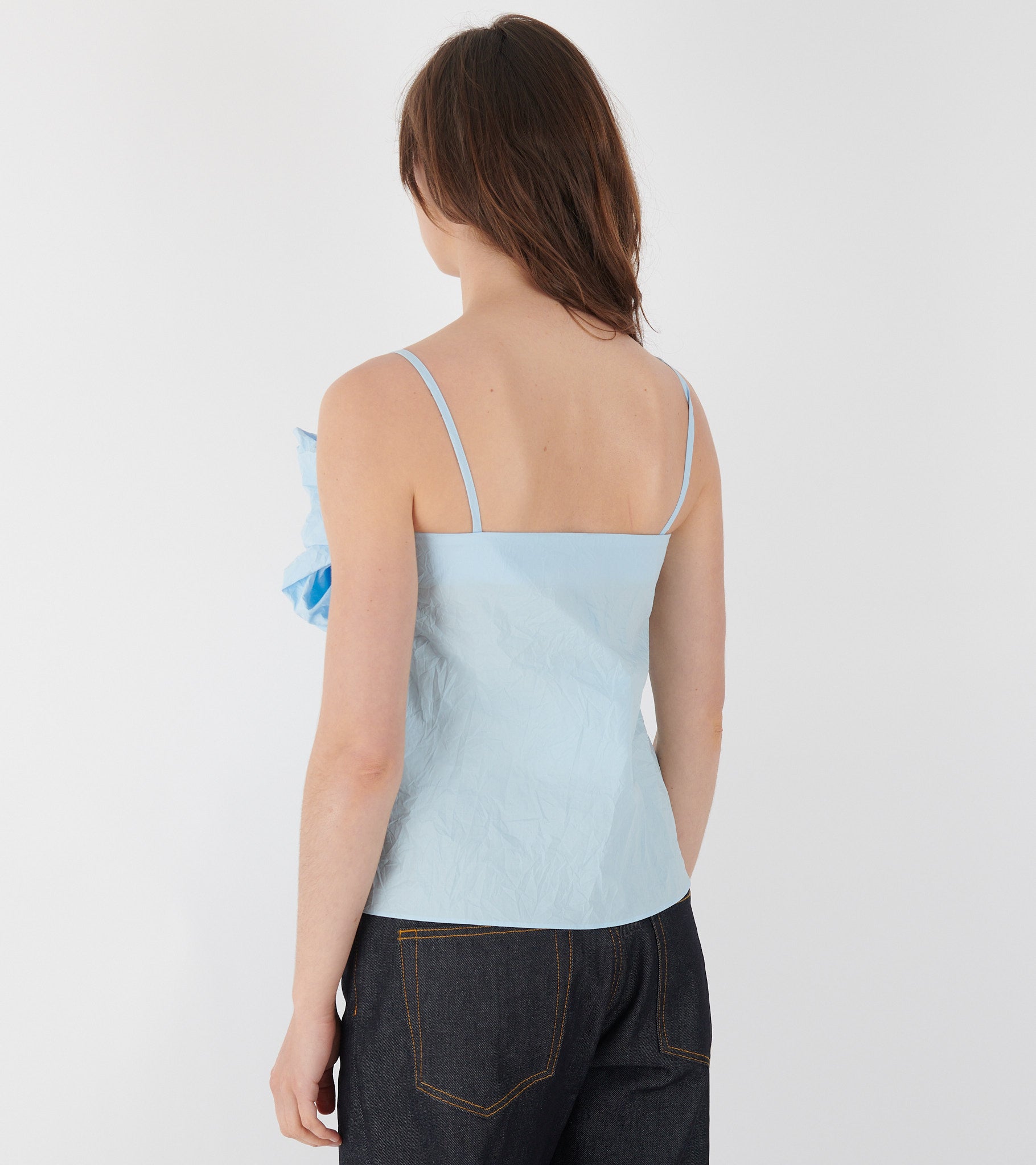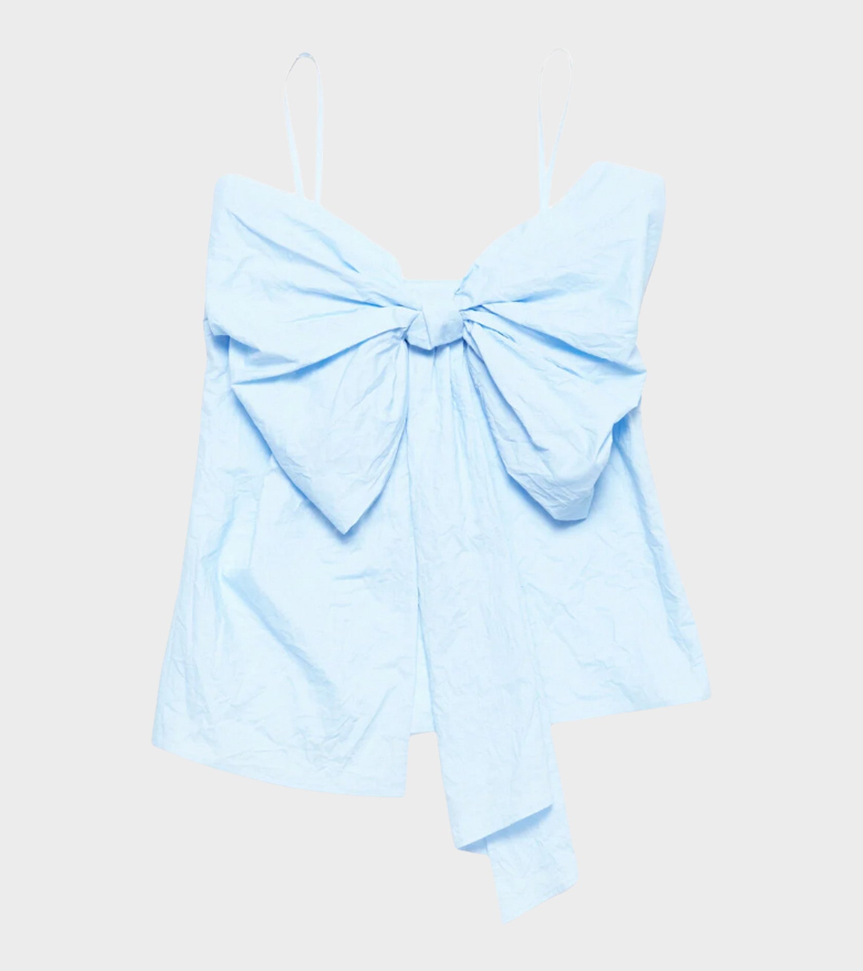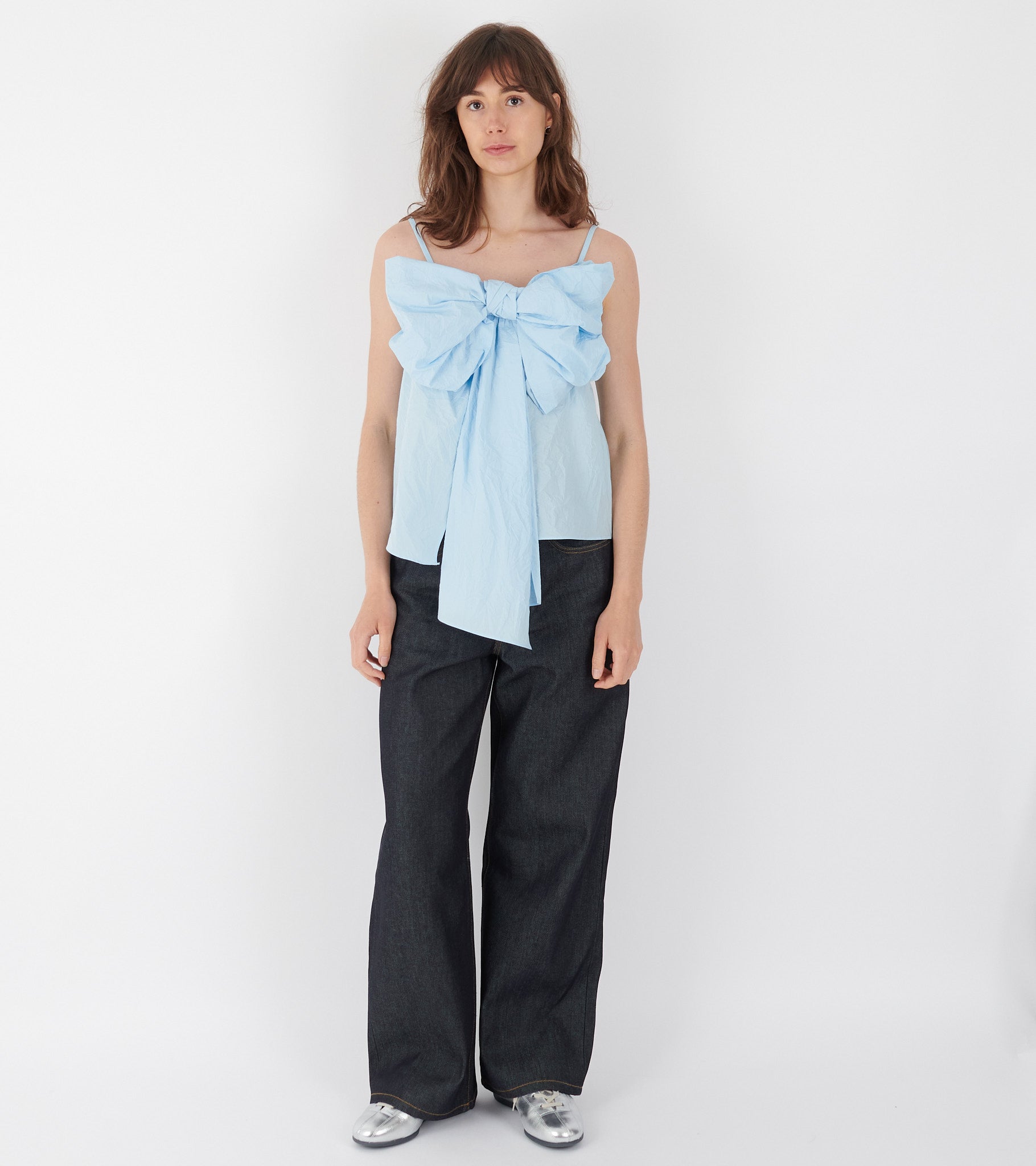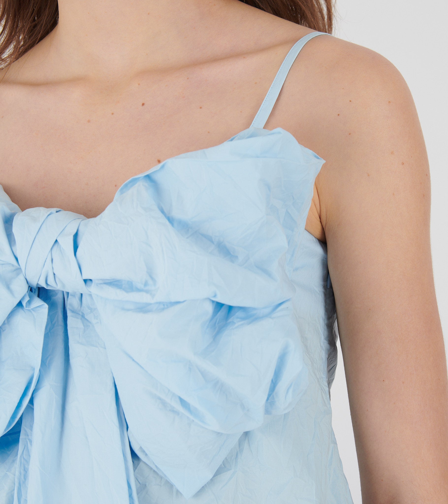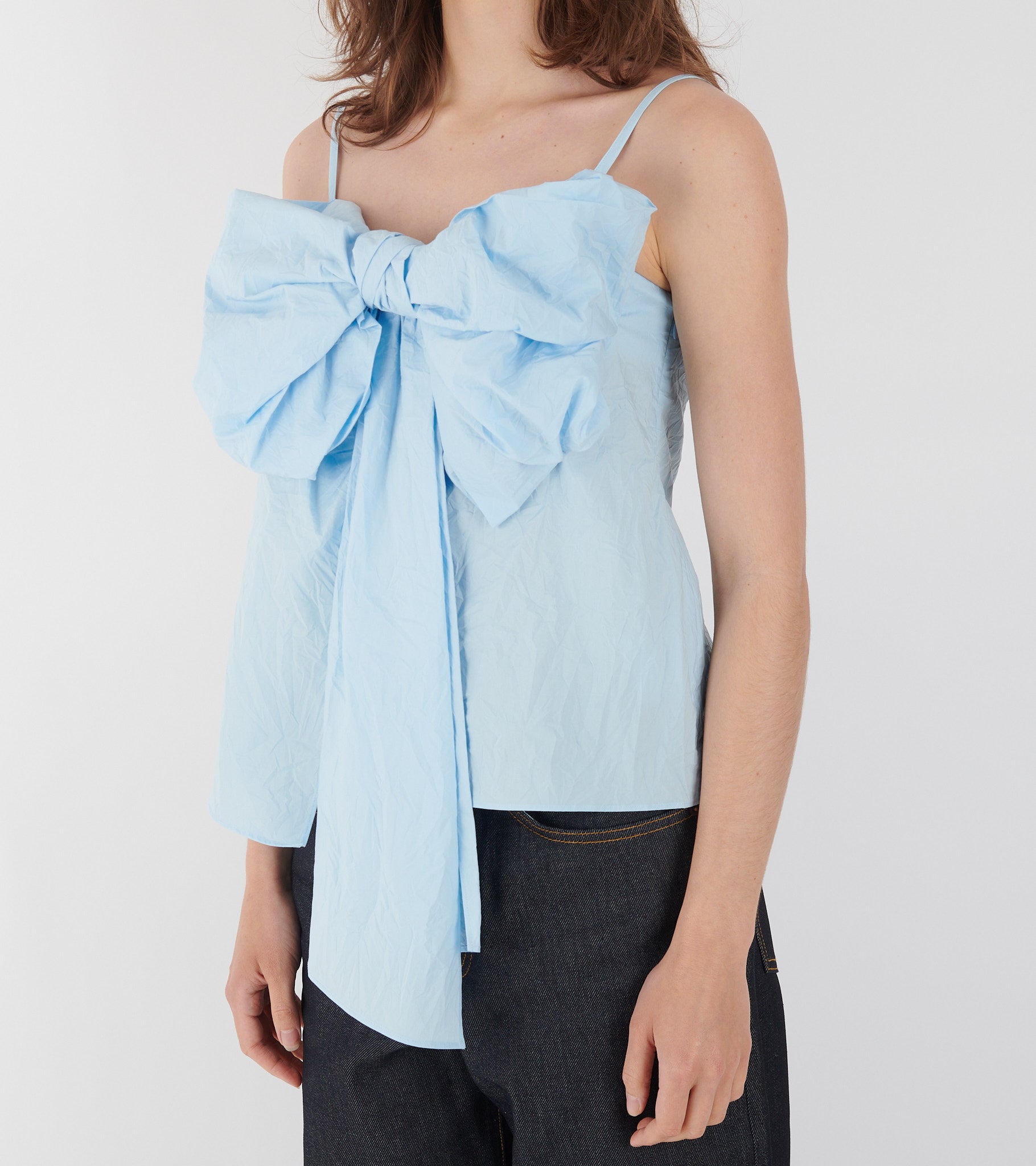 Lyseblå top med en stor sløjfe på fronten fra Acne Studios. Toppen er fremstillet i bomuldspoplin med en blød crinkled finish.