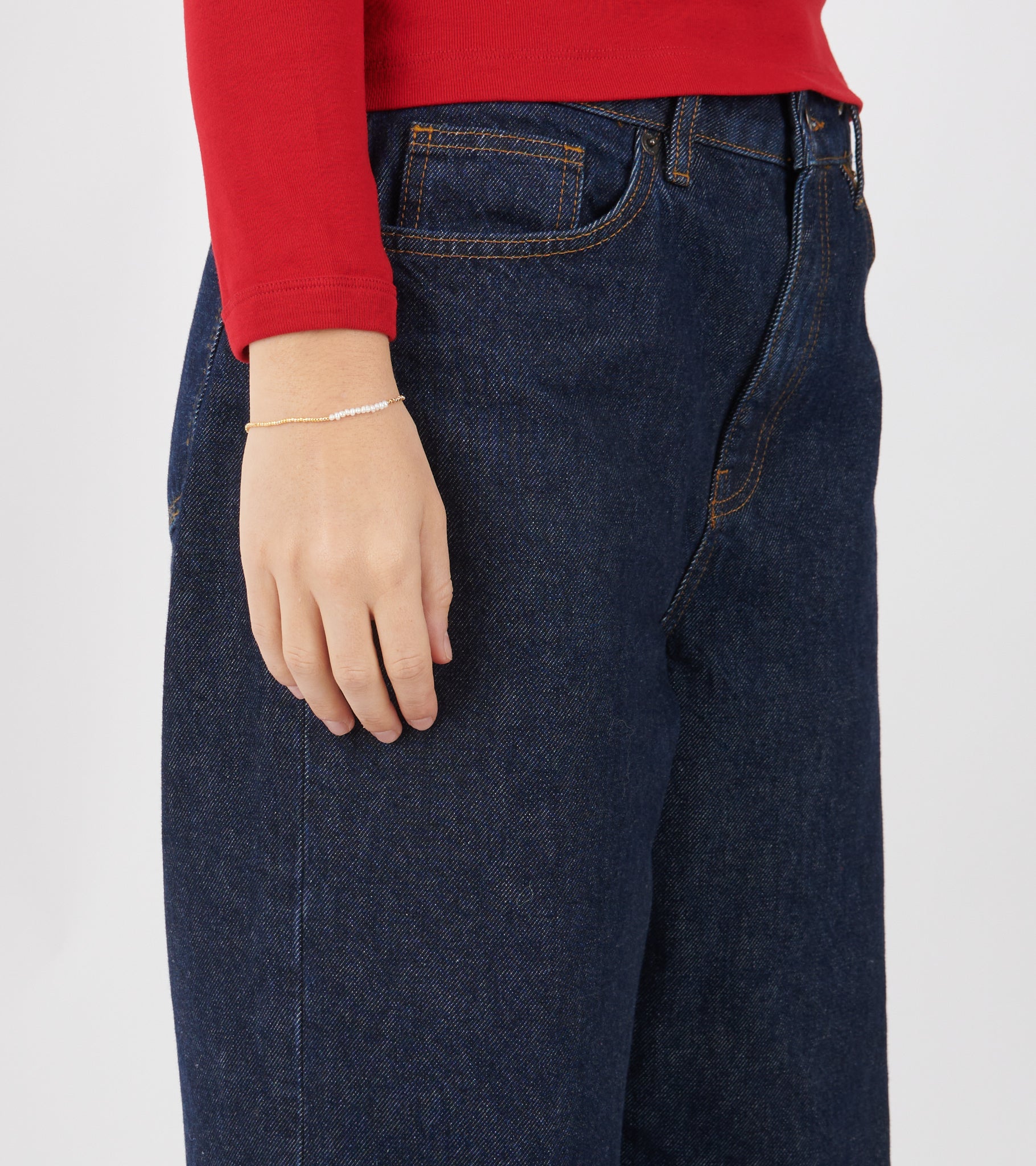 Armbånd med små halvædelsten i guldfarvet glasperler.